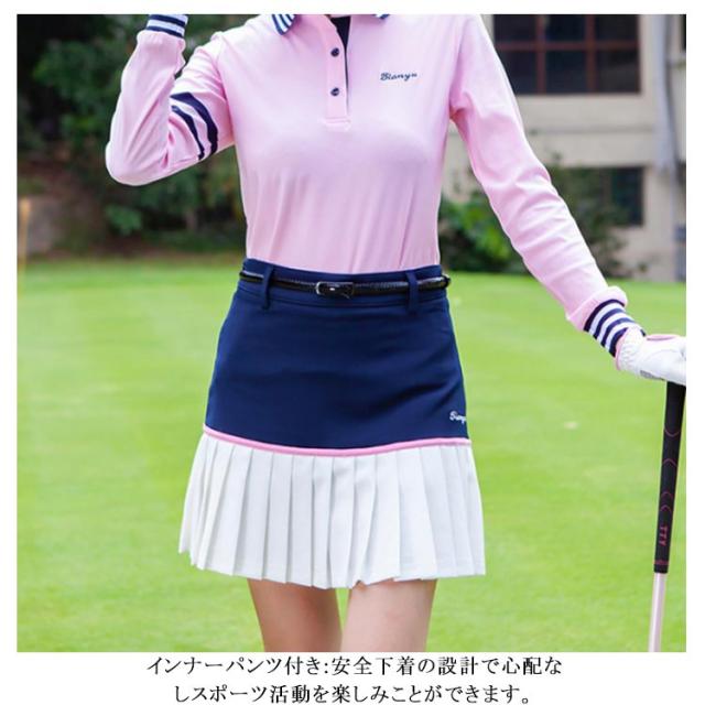 送料無料 ゴルフスカート レディース プリーツスカート テニス ミニ ゴルフウエア インナーパンツ付き サマーウエア 運動着 アウトドア 可愛い golf ネイビー ベルトなし