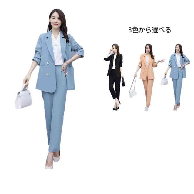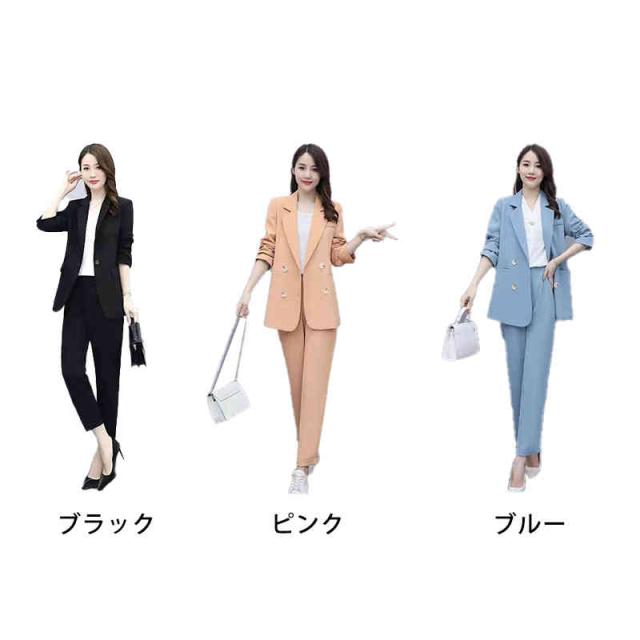 セットアップ 2点セット パンツスーツ レディース スーツ 上下セット フォーマル 黒 上品 ワイドパンツ ロングパンツ ジャケット パンツドレス 長袖 エレガント 通勤 OL 女性らしい 30代 40代 50代 大きいサイズ 体型カバー 着痩せ