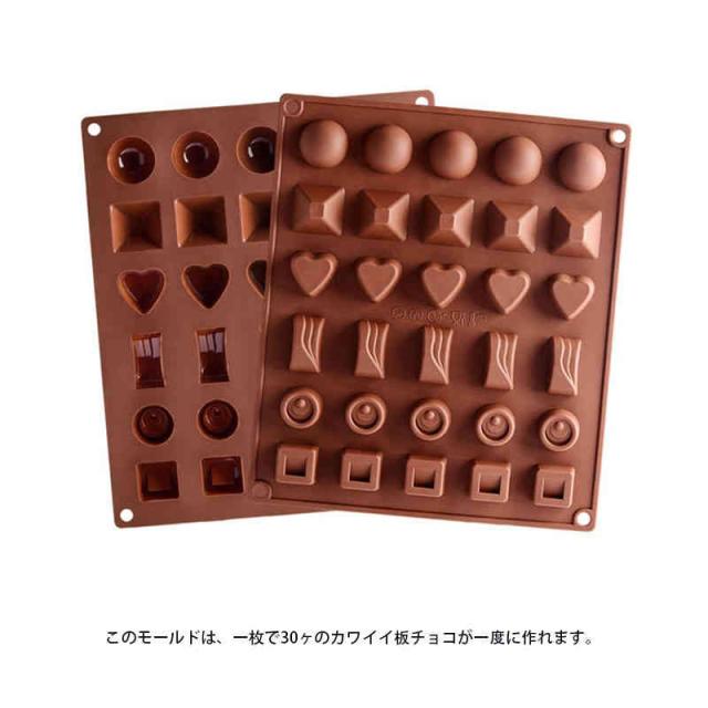 | シリコン型はチョコレート型(チョコモールド)としてはもちろん、耐熱・耐冷にも優れている型なので、カワイイ形の氷や焼き菓子作りもできます。 イージーチョコシリーズはとても可愛い型が揃っていてオススメです!型離れも良いですよ♪ このモールドは、一枚で30ヶのカワイイ板チョコが一度に作れます。 耐熱温度/230度、耐冷温度/-30度の素晴らしい耐熱耐冷を持っています。 | |
