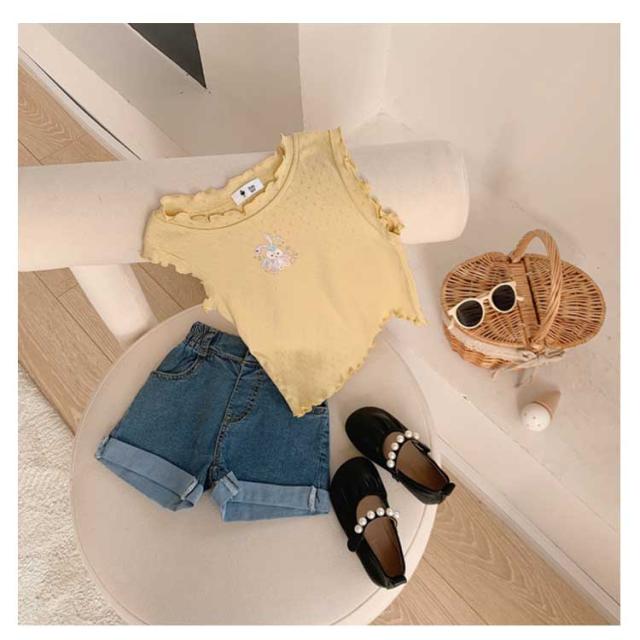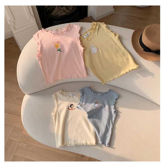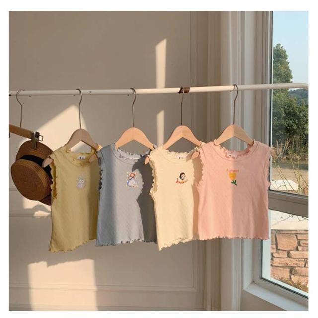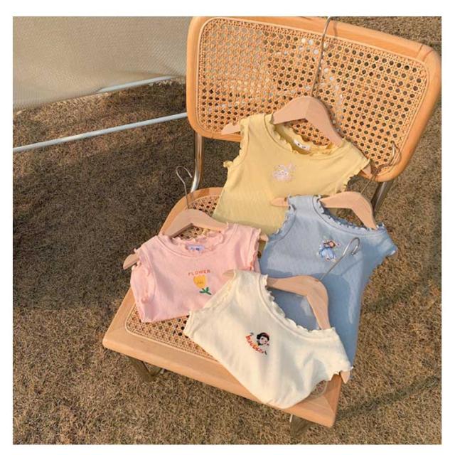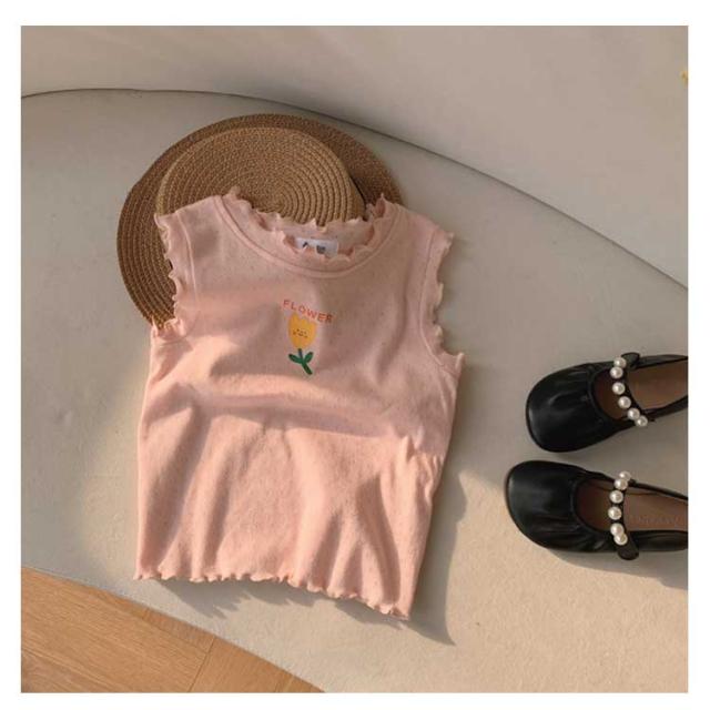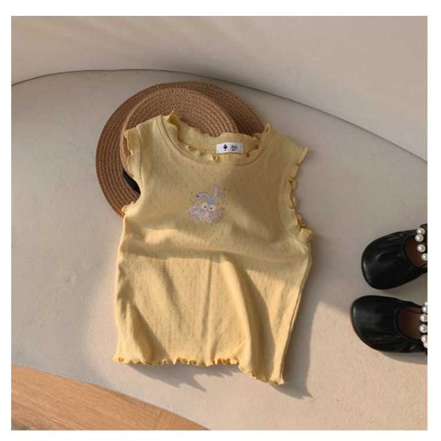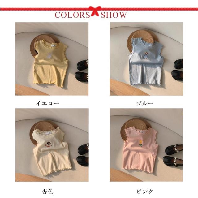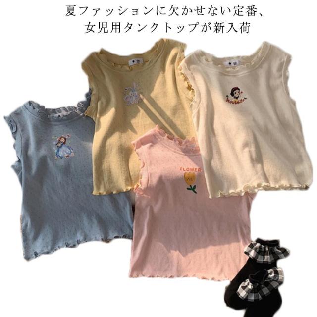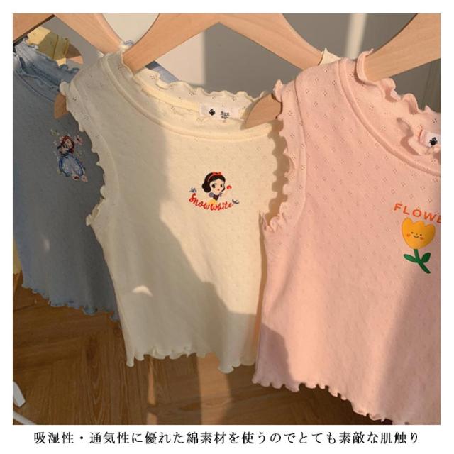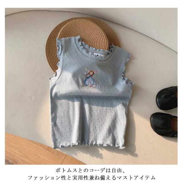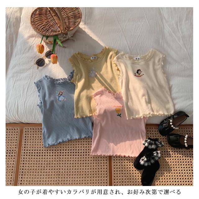 送料無料 女の子 タンクトップ 夏 Tシャツ ノースリーブ ガールズ 子供服 コットン トップス 袖なし メロウフリル ベビー カットソー クルーネック サマーTシャツ コットン おしゃれ かわいい