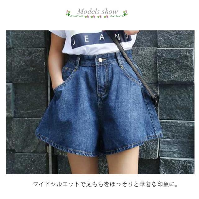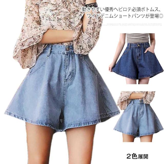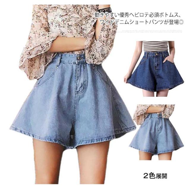 デニムパンツ デニムショートパンツ ショートパンツ レディース デニム 短パン ハイウエスト 美脚 大きいサイズ 春夏 秋冬 ブルー 無地 カジュアル 大きい ゆったり ボトム フレア ワイド 送料無料