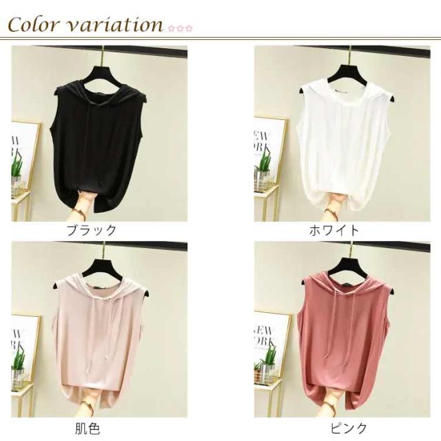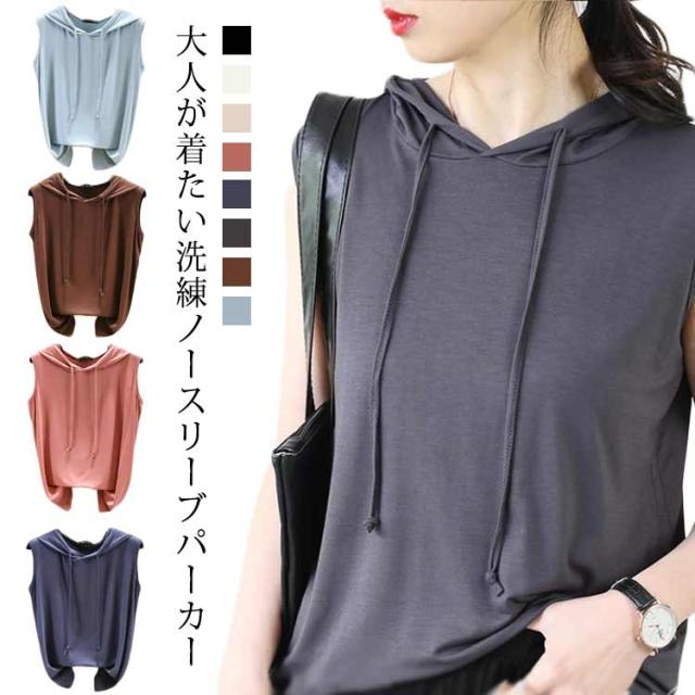 【送料無料】ノースリーブパーカー レディース 薄手 夏 春 Tシャツ トップス 涼しい カットソー おしゃれ フード付き 袖なし カジュアル 着回し力抜群 無地 プルオーバー レイヤード ベスト 大きいサイズ