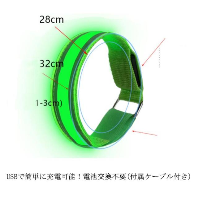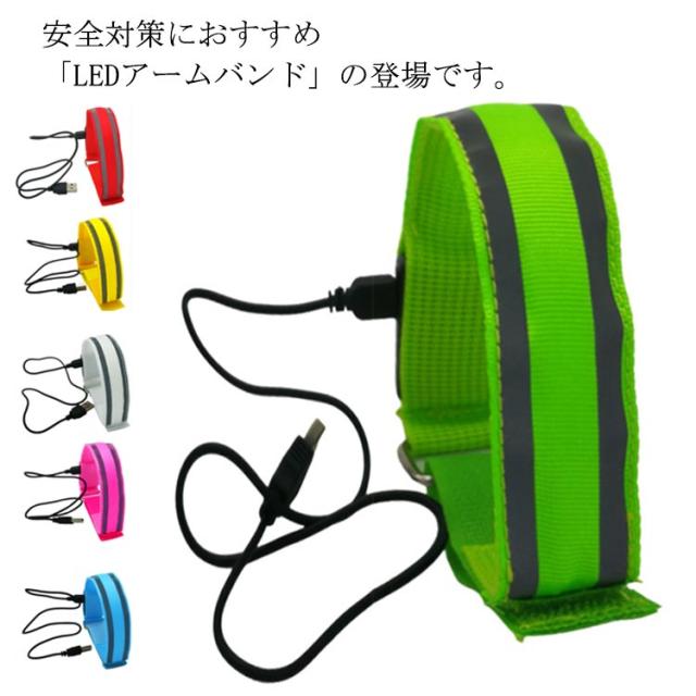 USB充電式 ランニング アームバンド リストバンド LED 反射板 反射材 光る ナイトラン 軽量 腕 反射バンド セーフティバンド ペット 散歩 自転車 夜道 安全対策 アウトドア スポーツ ウォーキング 登山 メンズ レディース 男女兼用 安全グッズ 夜間 通勤 通学 下校 送料無料