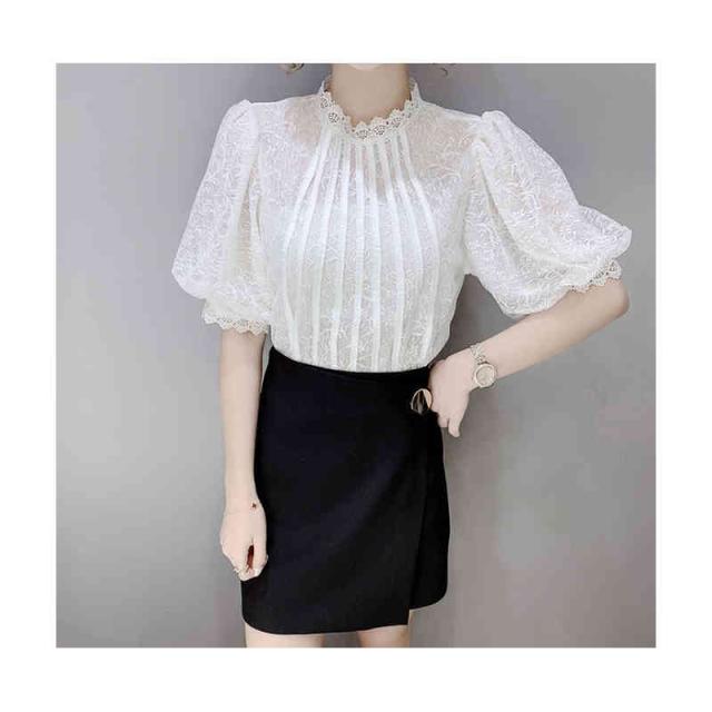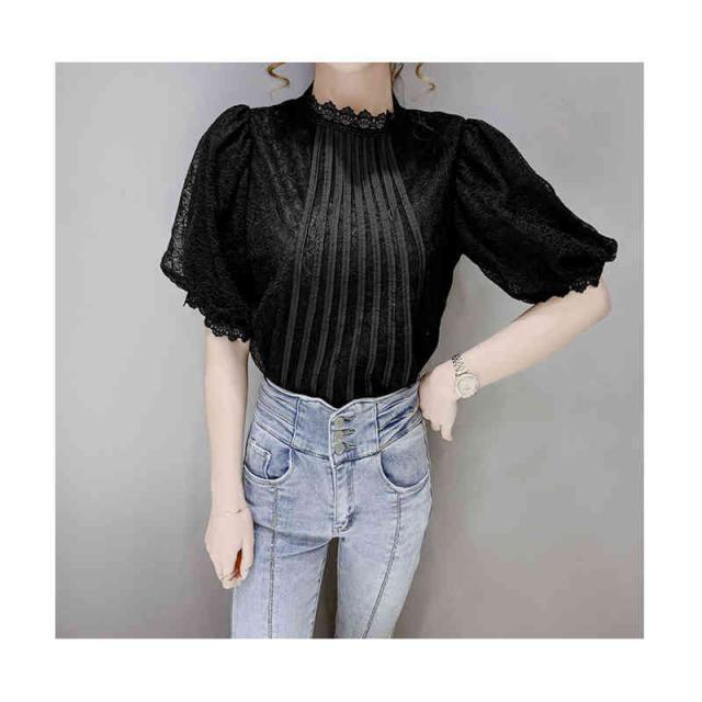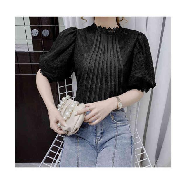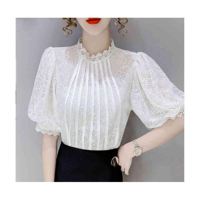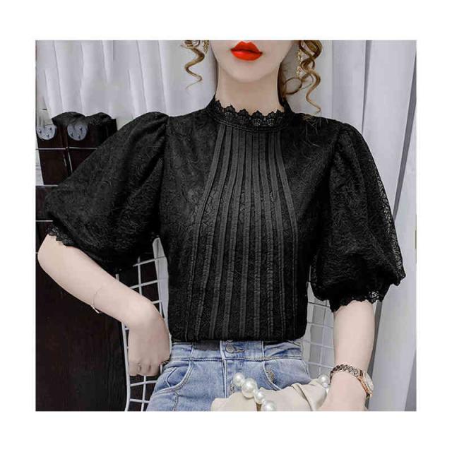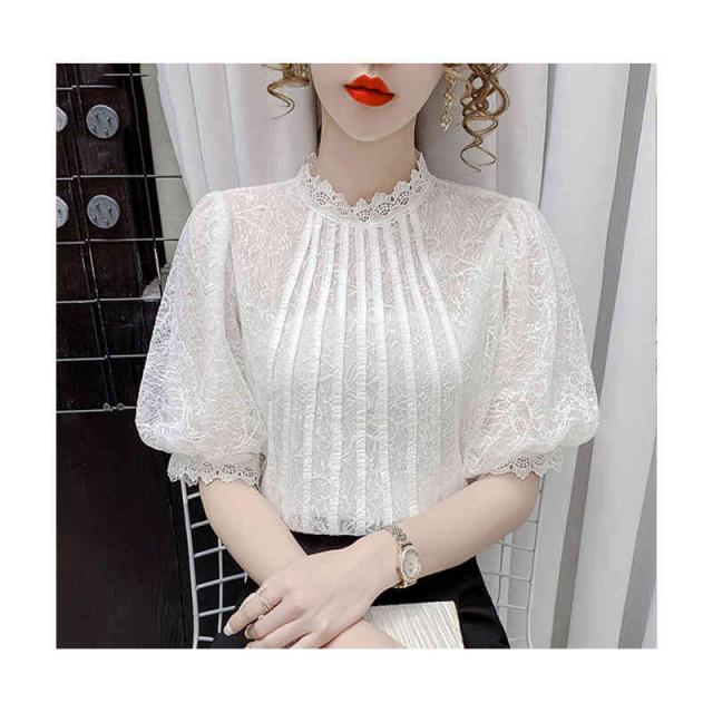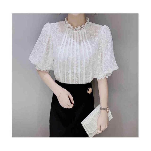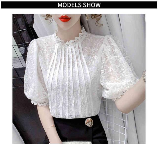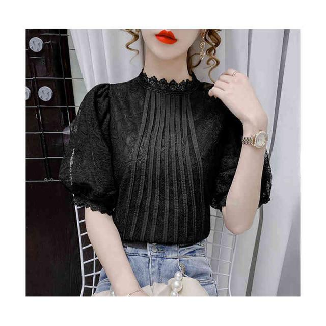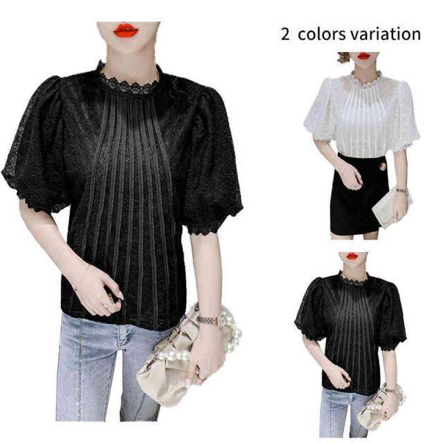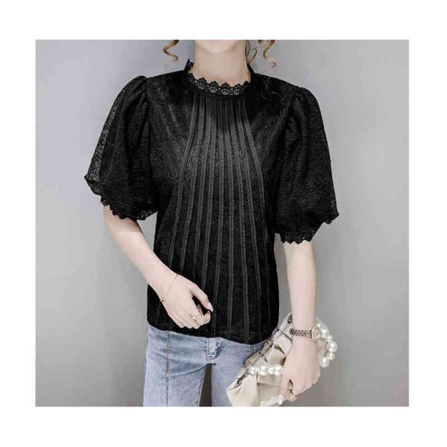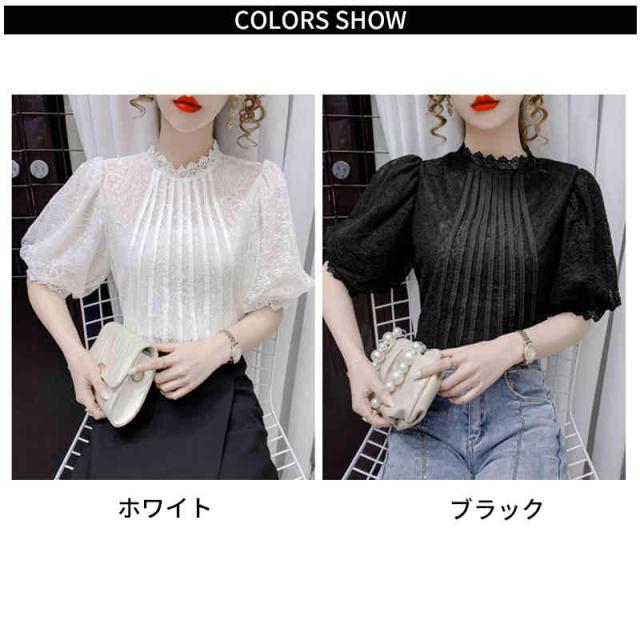 おしゃれブラウス レディース 春夏 フリルブラウス シフォンブラウス 半袖 薄手 レースブラウス トップス 丸襟 プリーツブラウス スタイル 無地 シンプル カジュアル おしゃれ フェミニン おでかけ 送料無料
