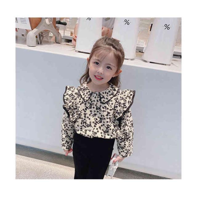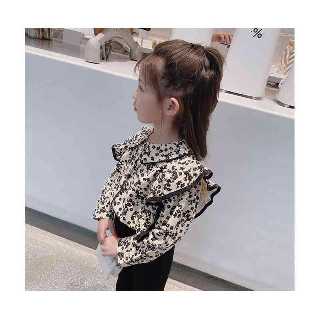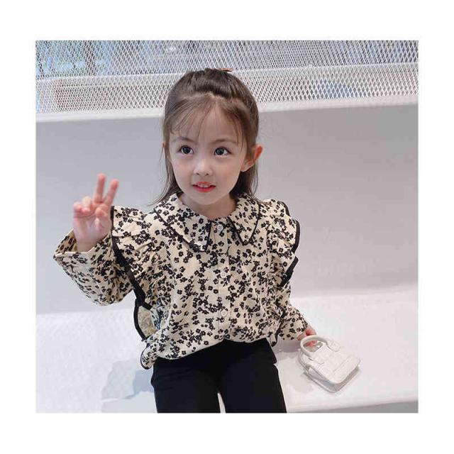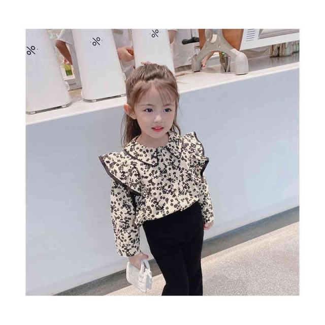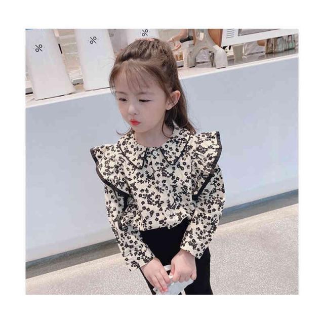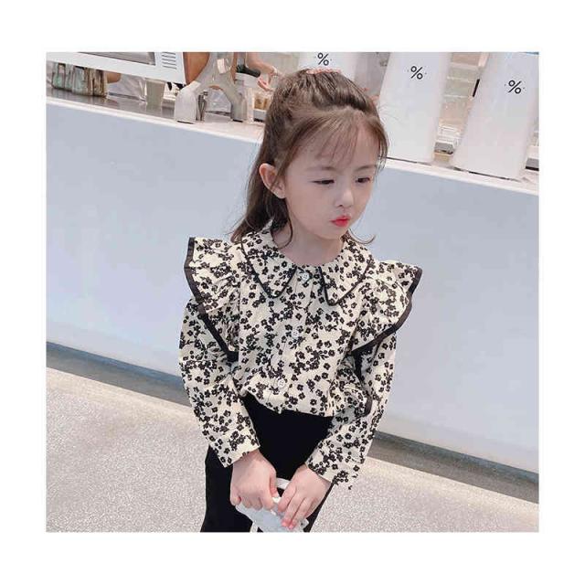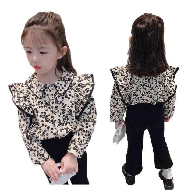 花柄 ブラウス キッズ 春秋 シャツブラウス フリルブラウス 折襟 ブラウス コットン 長袖 フリル おしゃれブラウス 花柄 ジュニア 女の子 子供服 シンプル カジュアル お洒落 おでかけ アウター 送料無料