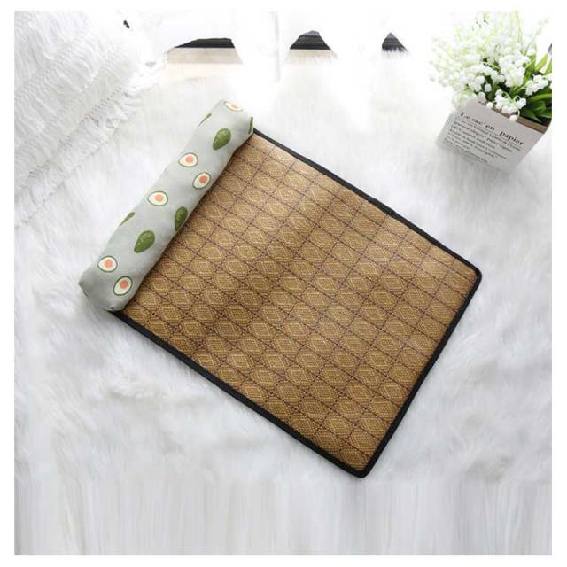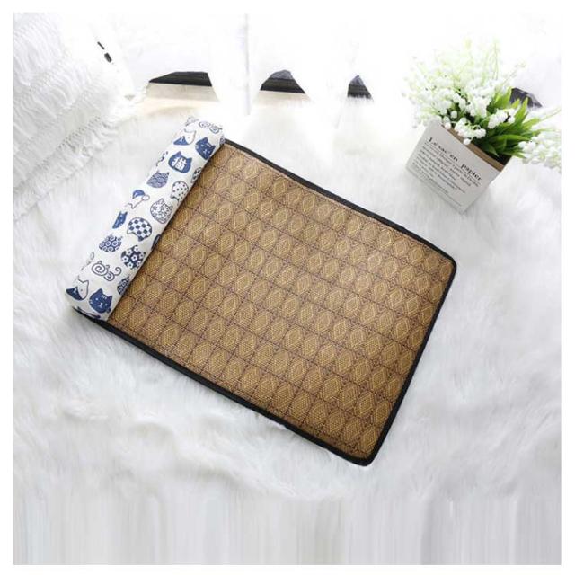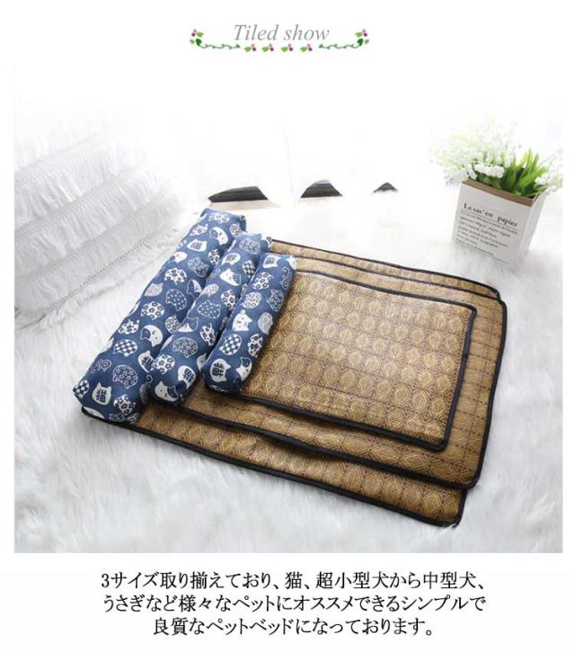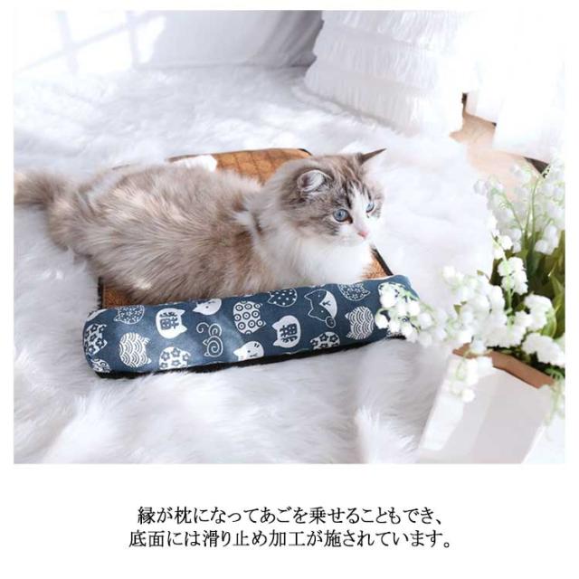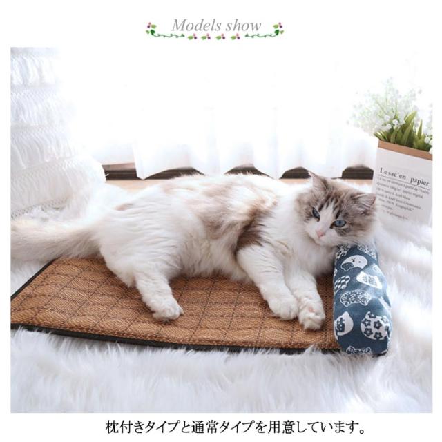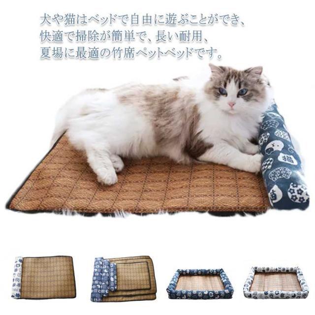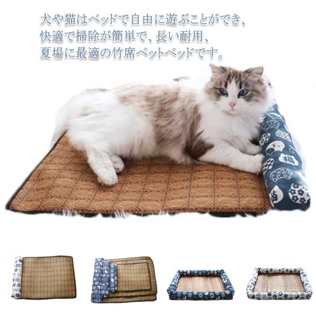 竹席 枕付き ペットベッド 夏用 ひんやり 暑さ対策 接触冷感 犬 猫 ベッド おしゃれ ペットマット 犬用ベッド ネコベッド 滑り止め付き 大きいサイズ 40×30 55×40 65×50 全7色 湿気遮断 室内用 S M L