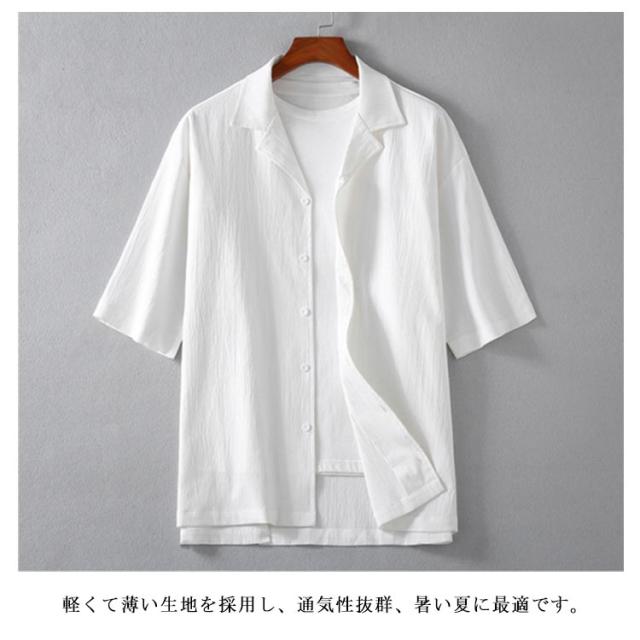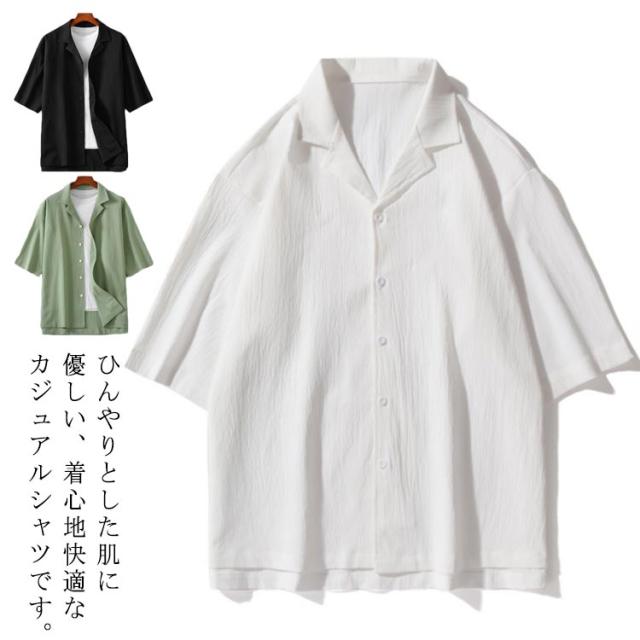 シャツ メンズ カジュアルシャツ 半袖シャツ 無地 カジュアル 春服 夏服 秋服 白 黒 冷感 接触冷感 ひんやり ゆったり ワイシャツ 無地 シンプル おしゃれ ビジネス 20代 30代 40代