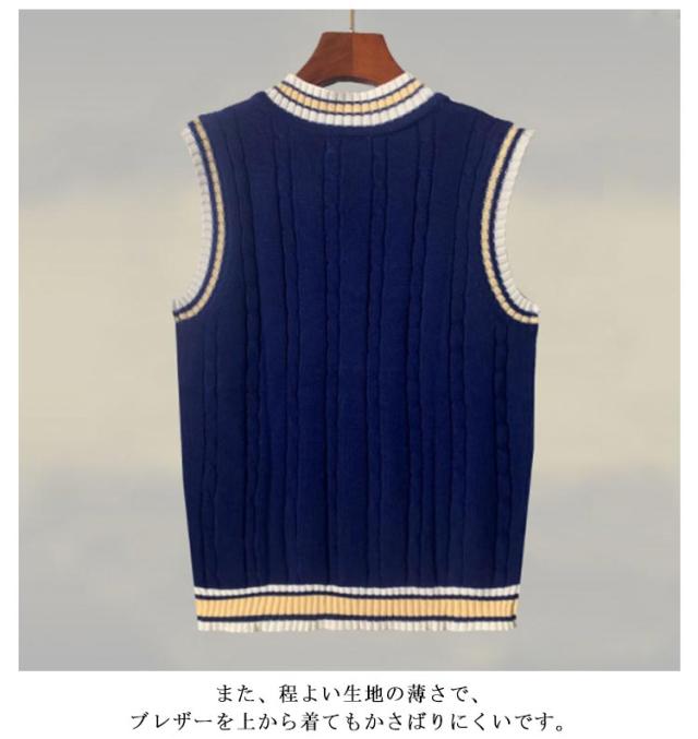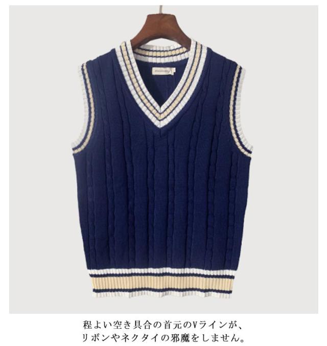 スクールベスト 制服 セーター 無地 ライン入り vネック 学生服 女子 男子 男女兼用 ユニセックス スクールセーター ケーブル編み コットン 白 黒 スクール ニットベスト 春 夏 秋 冬 中学生 高校生 学生服 通学