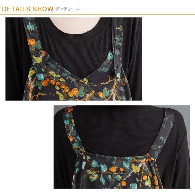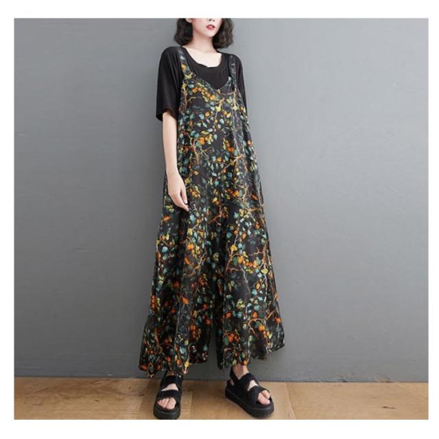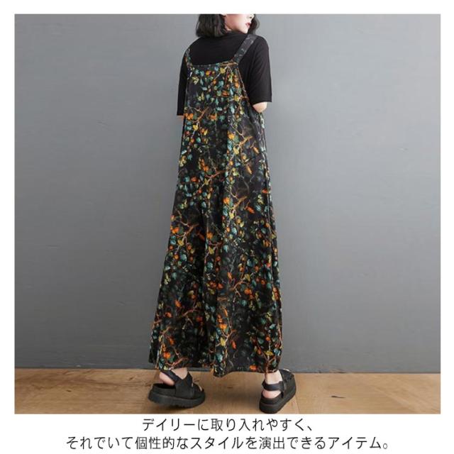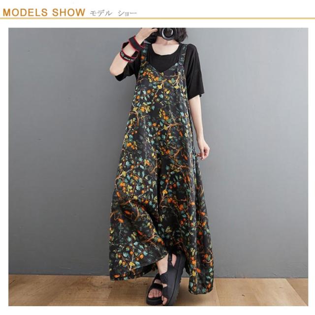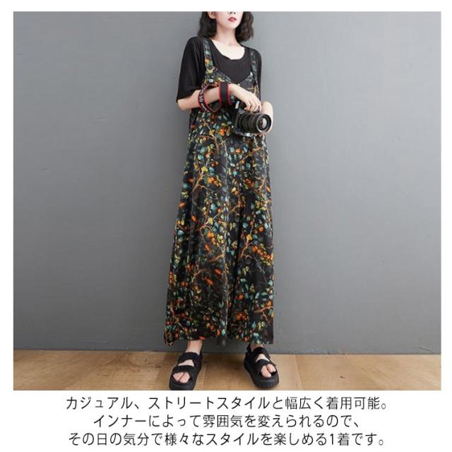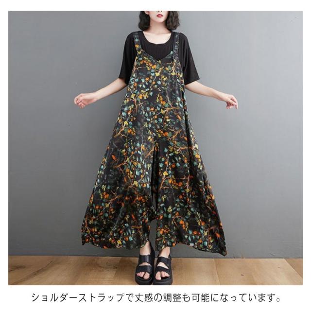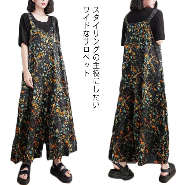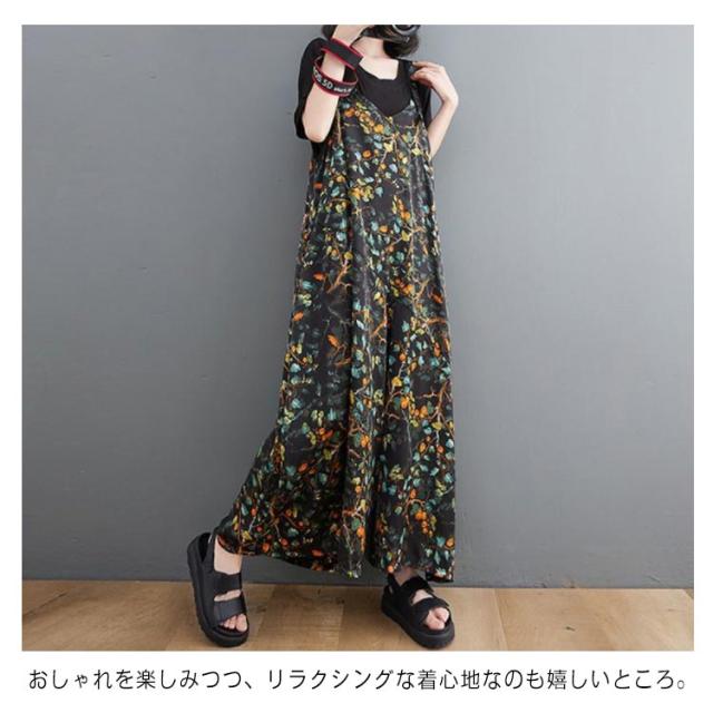 【送料無料】サロペット パンツ 花柄 ゆったり Vネック レディース 総柄 大人 ワイドサロペット 体型カバー 春 夏 秋 マタニティ 細見え 大きいサイズ ワイドパンツ きれいめ 20代 30代 40代 50代 マキシ丈