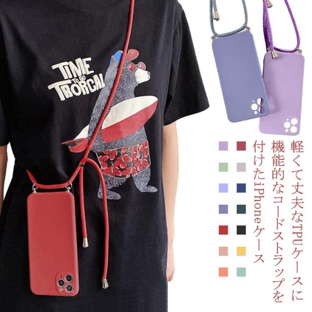 スマホケース ショルダータイプ iPhone13 ケース シリコン ストラップ付き 肩かけ 斜め掛け 13mini 13pro max 透明 携帯 カバー TPU 12mini 12pro max 11 11promax XR XS X XSMax ソフトケース 耐衝撃 落下防止 シンプル 薄型 便利 送料無料