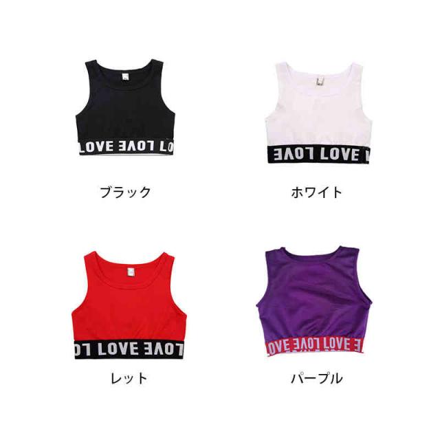 ダンス衣装 タンクトップ ショート丈 キッズ タンクトップ インナー へそ出し ダンス スポーツブラ ブラトップ 衣装 ショート丈 ヒップホップ 舞台 演出服 レッスン着 ブラック ホワイト レット パープル