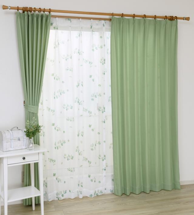 | 品名 | カーテン すぐに使える1窓セット NCユーカリ グリーン 100x178cm 4枚セット (ドレープカーテン+レースカーテン) |