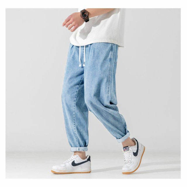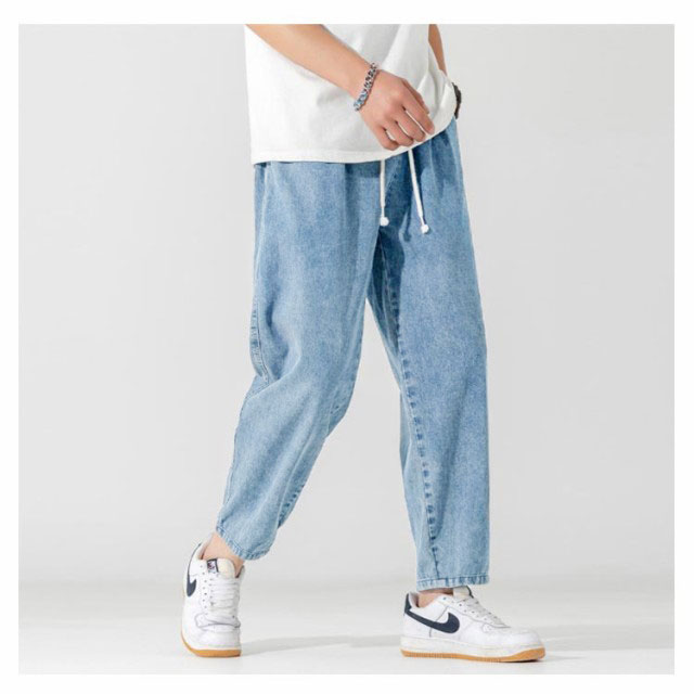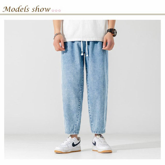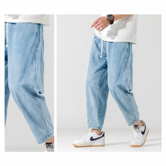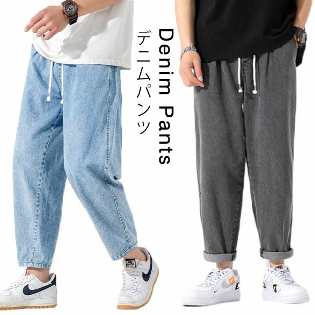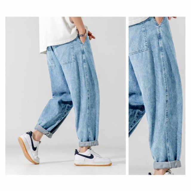 デニムパンツ 9分丈 パンツ メンズ ウオッシュ デニム ロングパンツ ジーンズ デニム ワイドパンツ デニム ストレートパンツ ロールアップ ジーパン アメカジ 彼氏 男性 春 夏 リラックス パンツ イージーパンツ ストリート系 夏男 夏服 送料無料