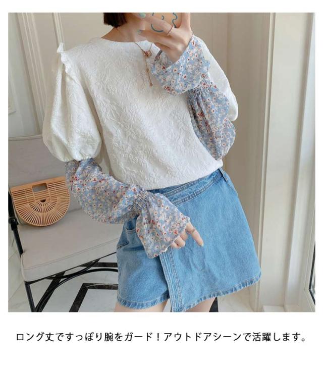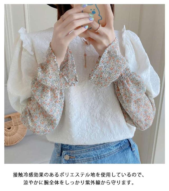 【送料無料】紫外線対策 アームカバー UVカット 花柄 フラワー アームカバー 涼感 ひんやり 日焼け予防 冷房対策 フリル おしゃれ かわいい アームウォーマー ロング丈 50cm レジャー アウトドア ナチュラル 紫外線 UVケア