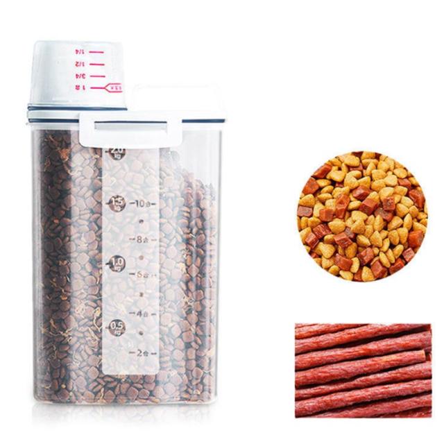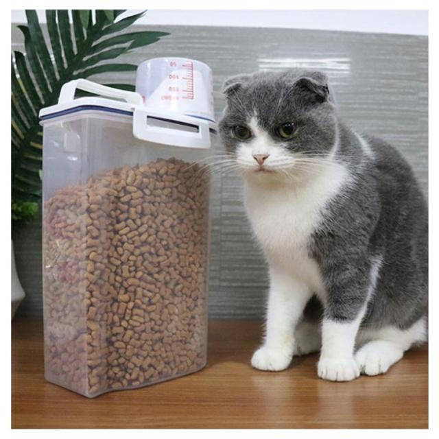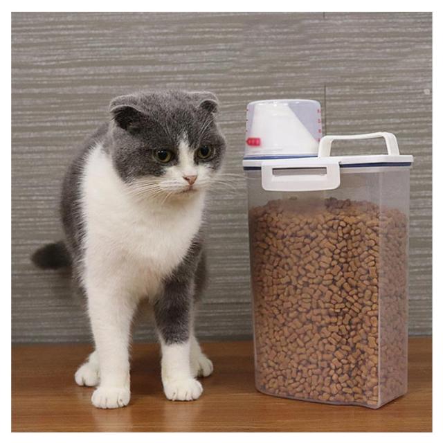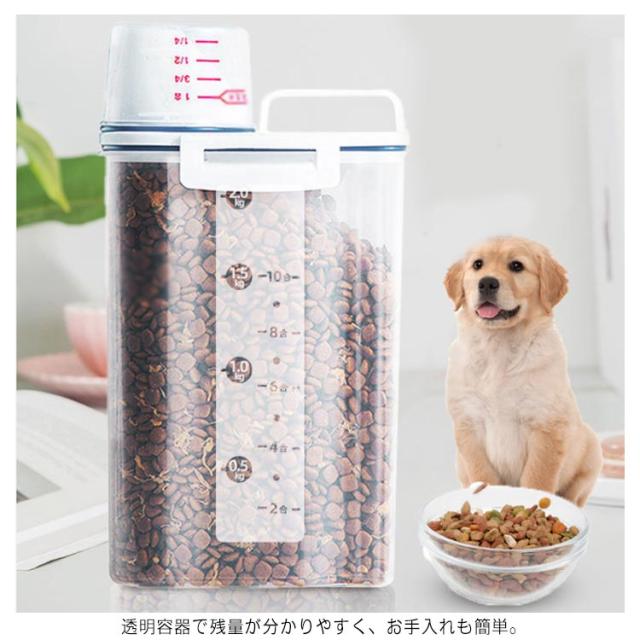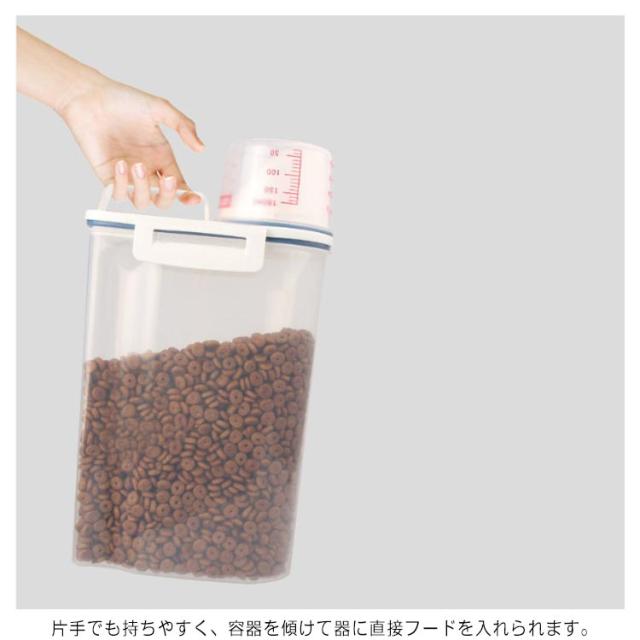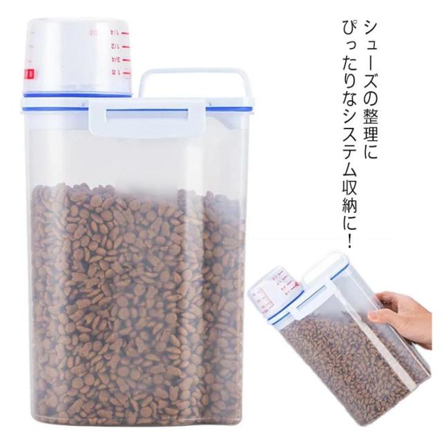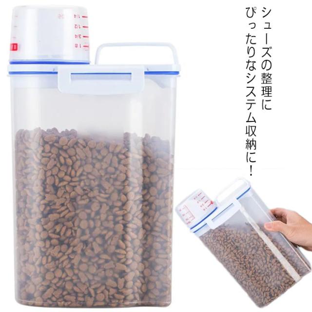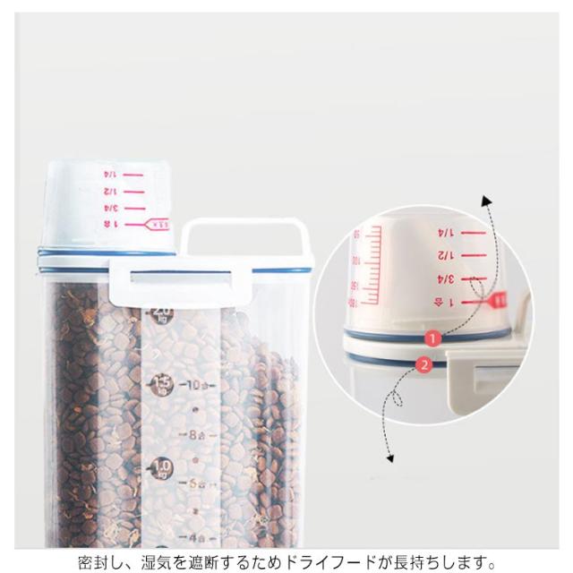ペットフードストッカー 2.5L 密閉 収納 計量カップ付 ドッグフード キャットフード 大容量 犬 猫 餌入れ 保存ケース エサ入れ 保存容器 使いやすい 湿気防止 便利 ペット用品 シンプル おしゃれ