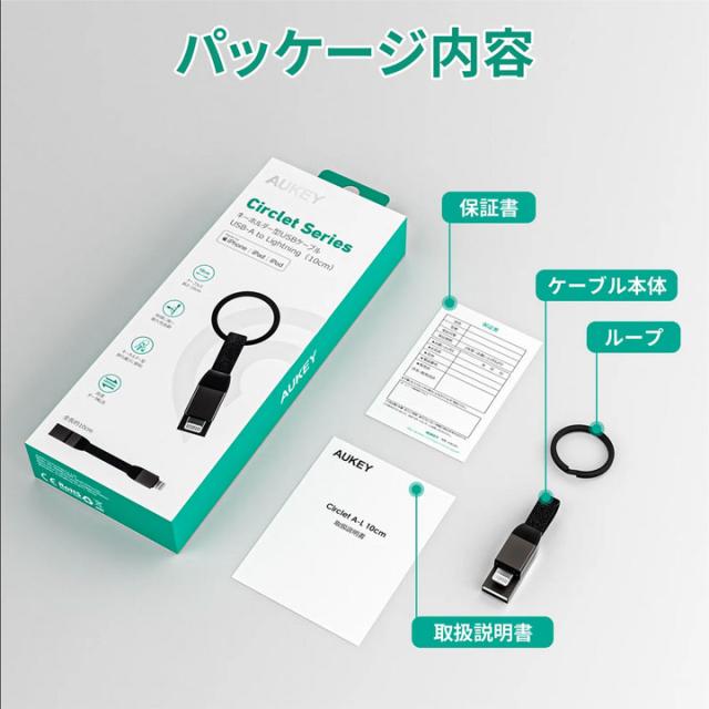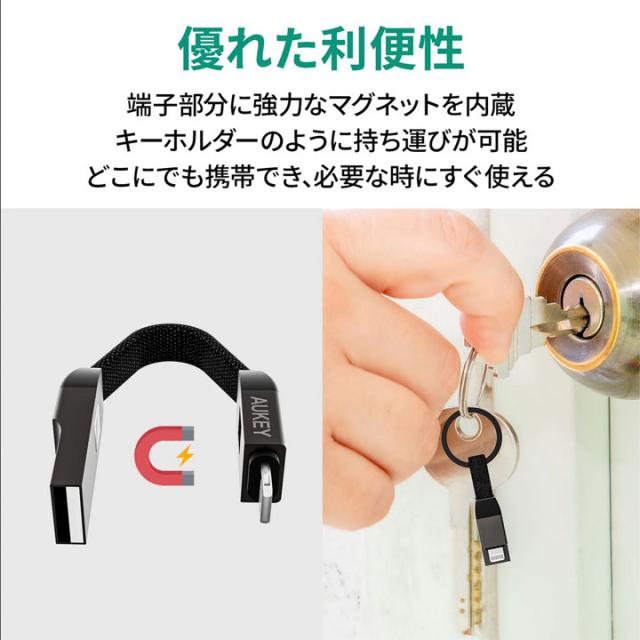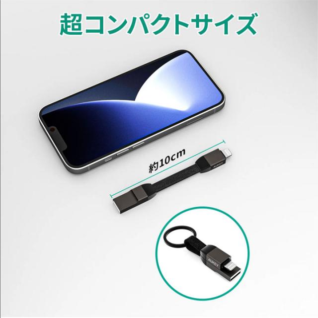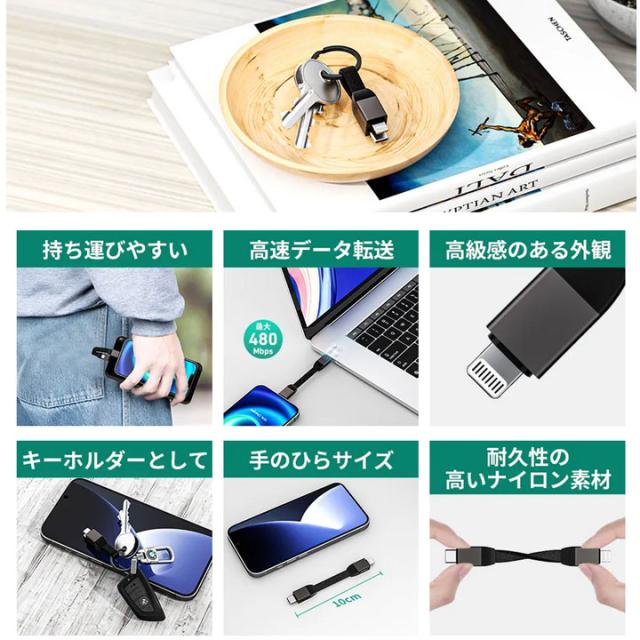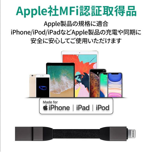 キーホルダー型Type-A to Lightning 10cm ケーブル 持ち運びに便利 高い耐久性 MFi認証 急速充電 充電 データ転送 メール便送料無料
