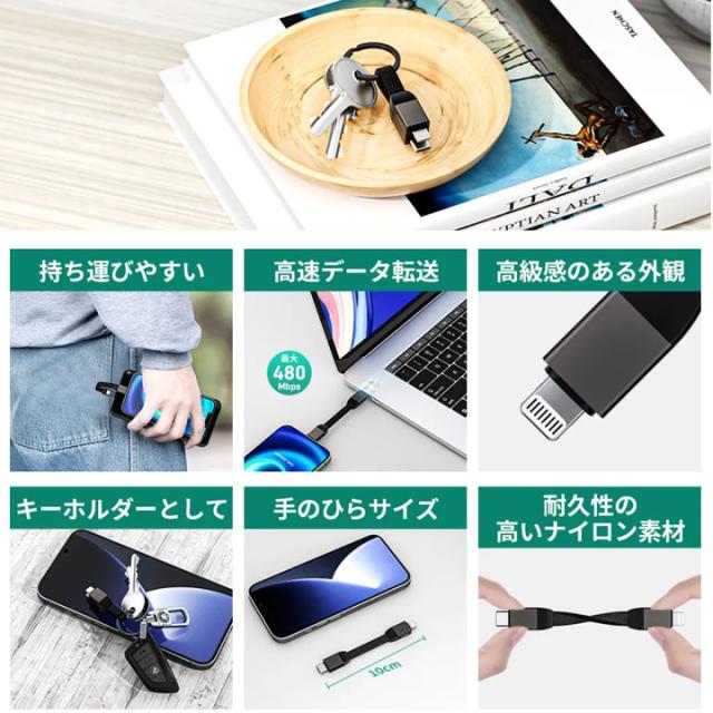 キーホルダー型Type-C to Lightning 10cm ケーブル 持ち運びに便利 高い耐久性 MFi認証 急速充電 充電 データ転送 メール便送料無料
