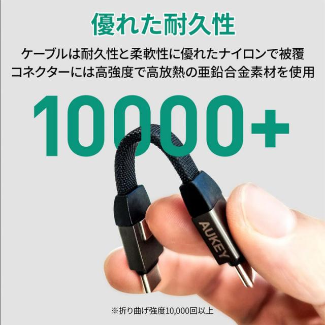 ケーブル部分は耐久性と柔軟性に優れたナイロンで被覆され、断線しにくくなっております。コネクター部分には高強度な亜鉛合金を採用し、高級感のある外観に仕上がっています。