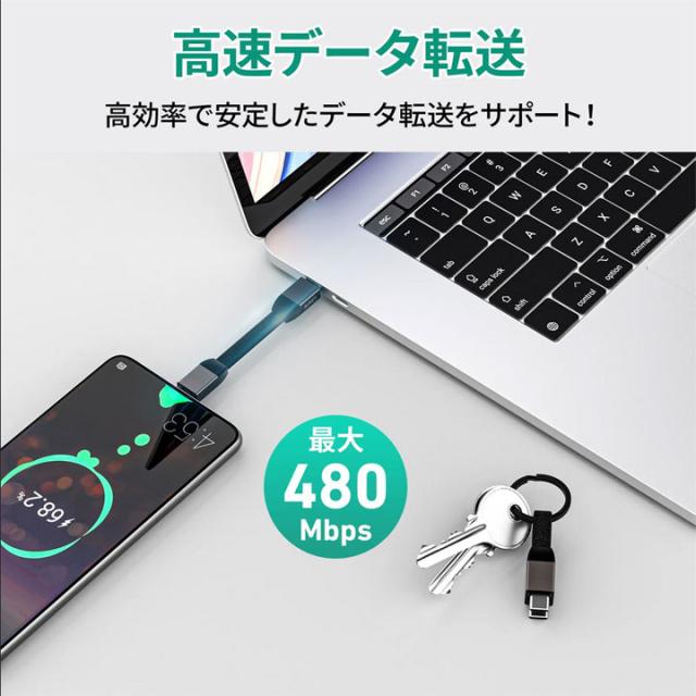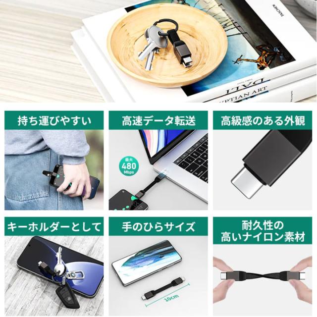 キーホルダー型Type-C to Type-C 10cm ケーブル 持ち運びに便利 高い耐久性 急速充電 充電 データ転送 メール便送料無料