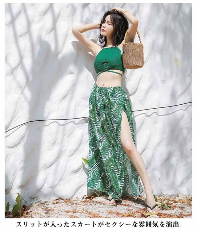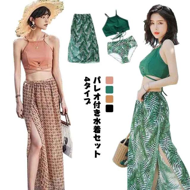 水着 レディース パレオ 体型カバー ビキニ 3点セット ハイネック ロングスカート ママ 体型カバー水着 30代 40代 50代 大人可愛い 送料無料