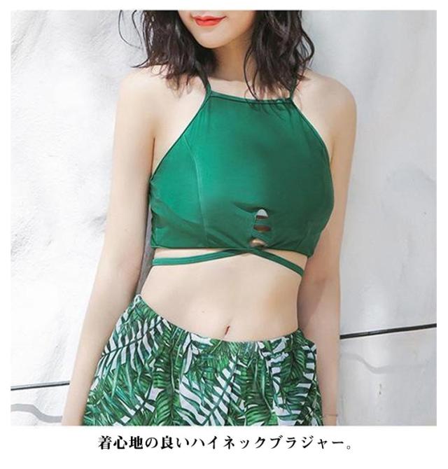 | パレオでしっかり体型カバー。 スリットが入ったスカートがセクシーな雰囲気を演出。 着心地の良いハイネックブラジャー。 スカートはハイウエスでオシャレにすらっと脚見せ♪ | |