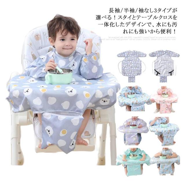 子供用 エプロン テーブルクロス一体型 スタイ お食事エプロン 長袖 半袖 袖なし 3タイプ 食べこぼし 防水 ベビーエプロン 男の子 女の子 赤ちゃん 動物 食事用エプロン 保育園 おしゃれ 子供用 幼児 ベビー用品 出産祝い コンパクト 送料無料