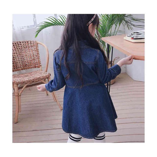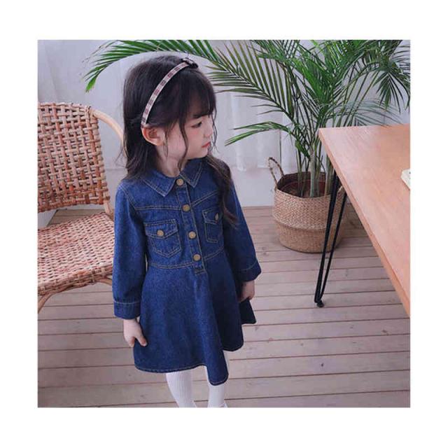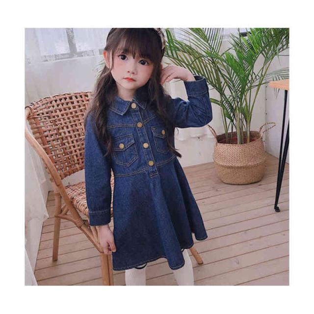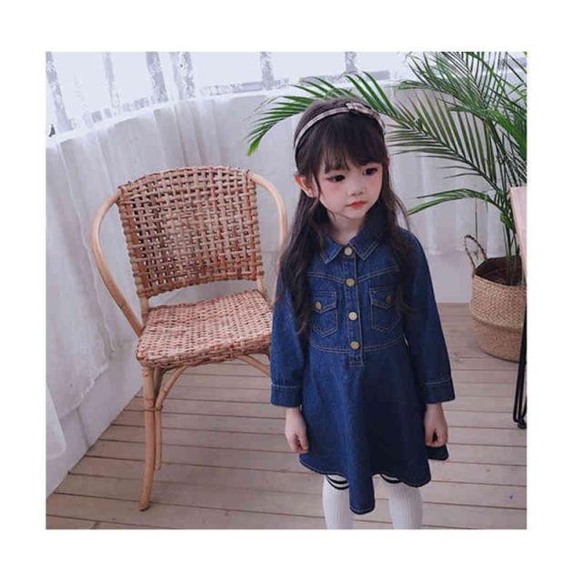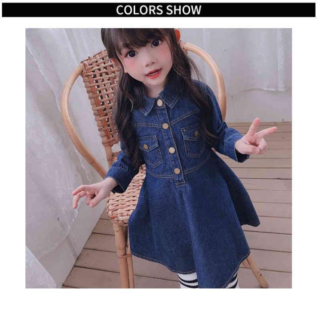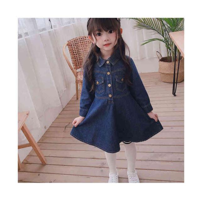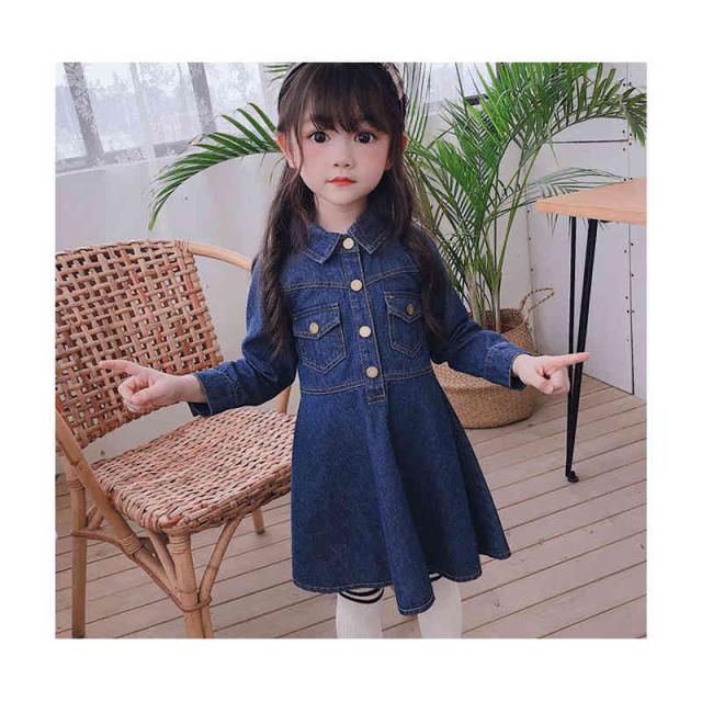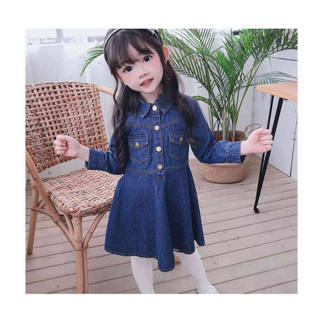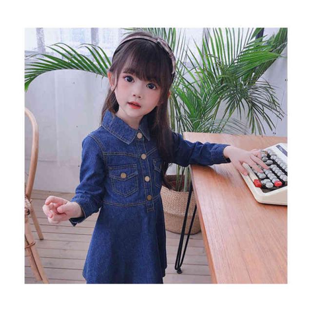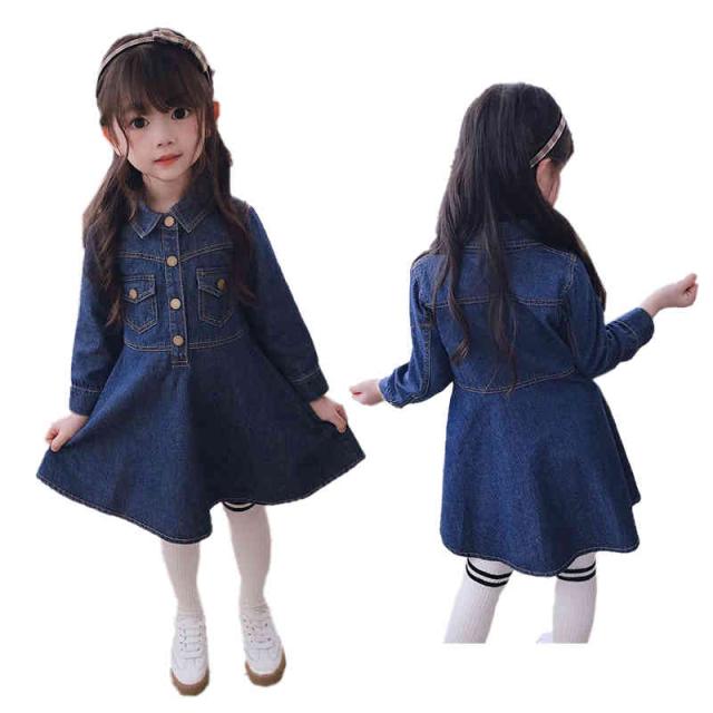 デニムワンピース 折襟 ジュニア キッズ ワンピース 子供服 女の子 ワンピース 長袖 ロングワンピース Vネック 九分袖 春 秋 夏 デニム ワンピース 無地 シンプル カジュアル おしゃれ フォーマル 送料無料