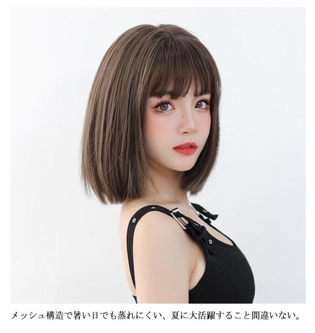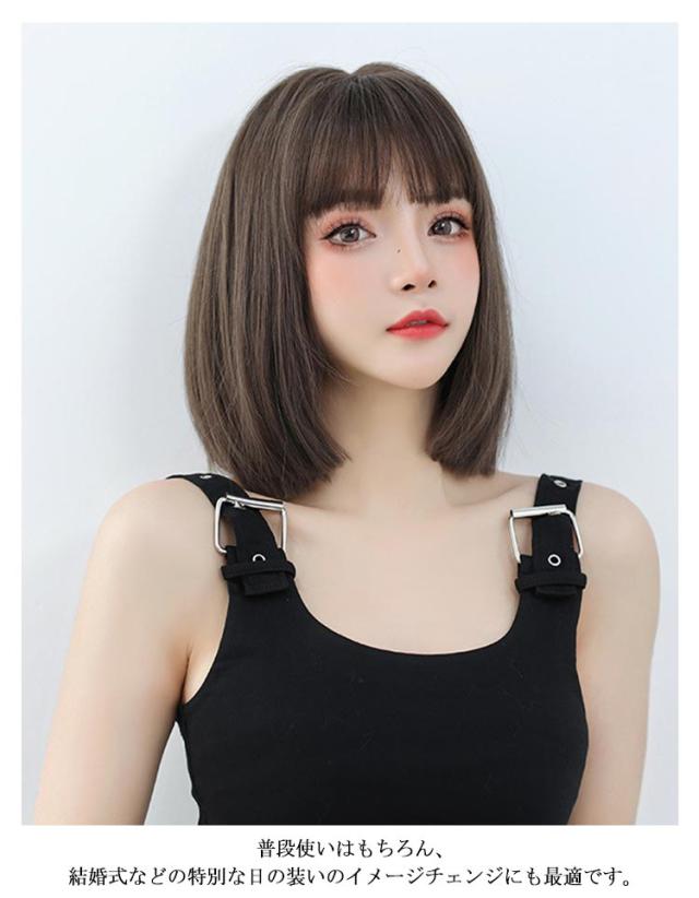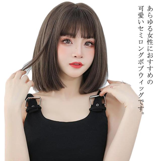 ウィッグ フルウィッグ ストレート かつら ボブ レディーズ 医療用 自然 小顔効果 ぱっつん前髪 原宿系 レディーズ セミロング