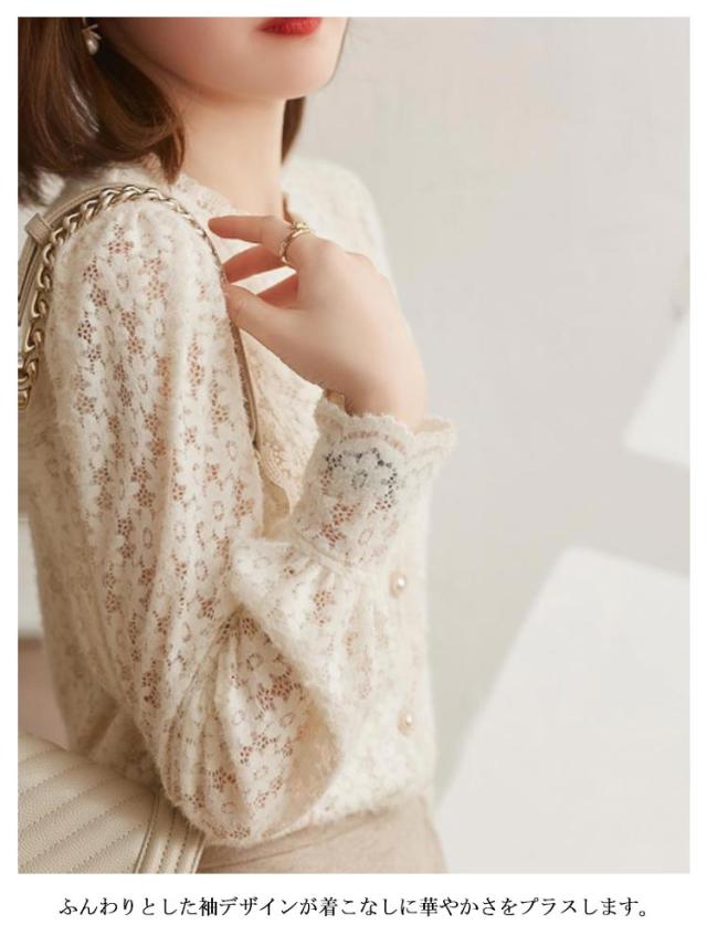 きれいめ ブラウス レース ゆったり レディース 花柄 バルーン袖 シャツ トップス 大きいサイズ 夏 カジュアル 裏地あり 透けない ベージュ 春 春 長袖 秋 可愛い おしゃれ 通勤 フェミニン