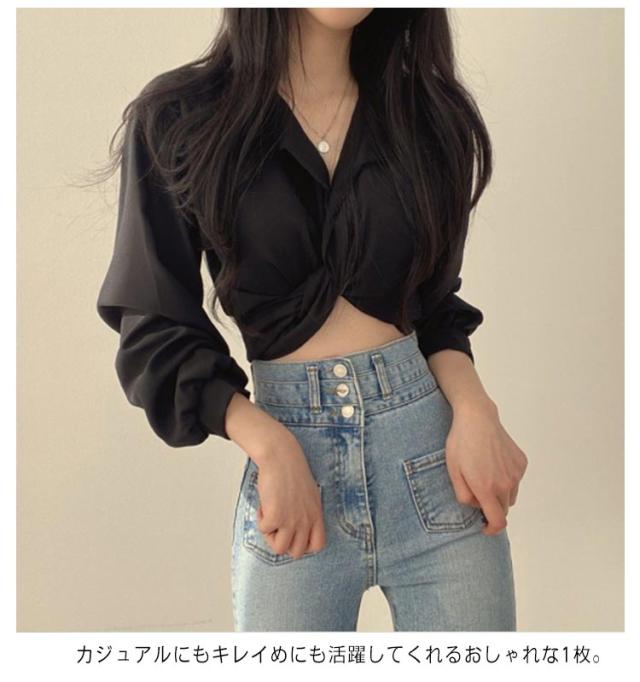 | セクシーでかわいいショート丈シャツブラウス。 短めの丈でハイウェストボトムスとの相性抜群! ツイストをしたような絞りデザインがポイントです! ちらっと肌魅せすることで大人しいセクシーさも演出できます! 色んなスタイルに対応してくれるので重宝すること間違いなし。 カジュアルにもキレイめにも活躍してくれるおしゃれな1枚。 | |