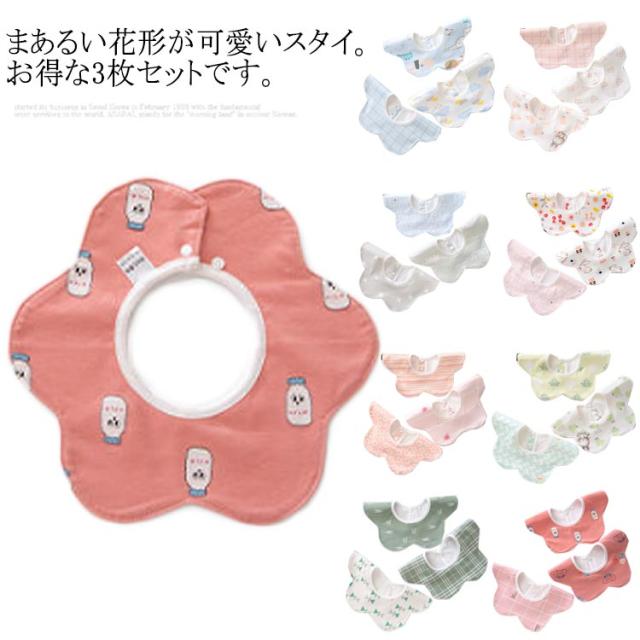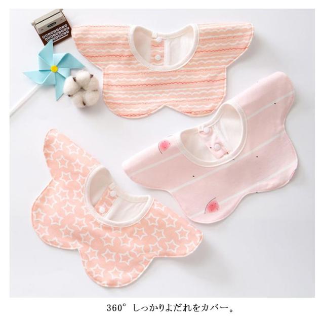 スタイ 赤ちゃん 360度 前掛け 女の子 コットン 防水 赤ちゃん まるいスタイ よだれかけ ビブ 男の子 ベビー スナップボタン キッズ 子供 綿100% 3枚セット 出産祝い おしゃれ
