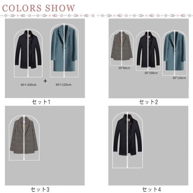 衣類長期保管 XL L 5枚組 衣類カバー M ファスナー付き 大容量 半透明 全面カバー 防塵 衣替え タンス クローゼット 衣類収納袋 中身が見える コート収納 ほこり除け 通気性良好 アストロ防水 洋服カバー