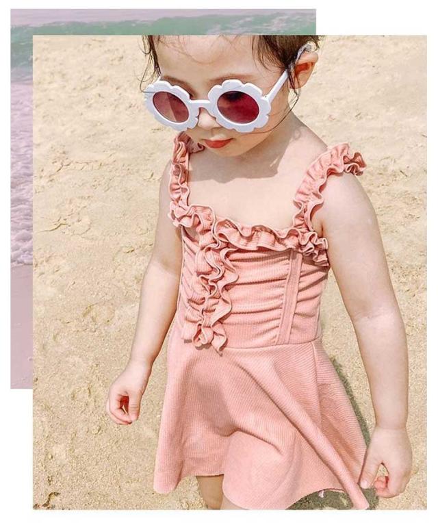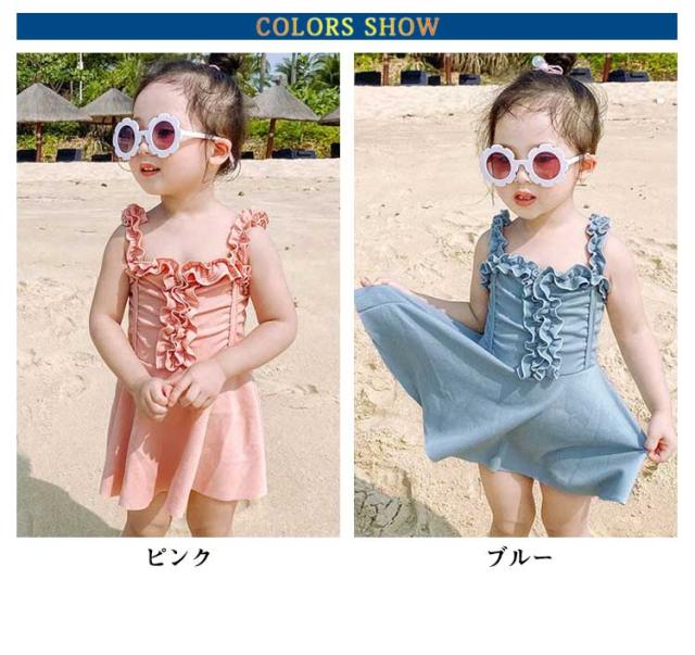 キッズ 水着 女の子 フリル ワンピース 100 110 120 130cm 子供水着 子供 子ども 女子 ガールズ かわいい スイムウェア ピンク ブルー 送料無料