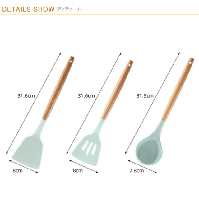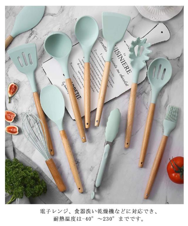 | 人体に安全なシリコン素材で作られたキッチンツール11点セット 電子レンジ、食器洗い乾燥機などに対応でき、耐熱温度は-40°〜230°までです。先端はシリコン製なので、安全素材で耐高低温性に優れ、耐久性も備えています。 汚れても水洗いできることでお手入れがとても簡単です。 木製の持ち手は滑らかで手持ちやすいで、壁掛けで収納できます。 シンプルなデザインは統一感と清潔感が備え、キッチンの雰囲気に合わせ、飾れるようになります。 | |