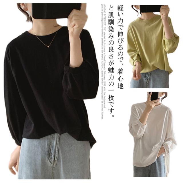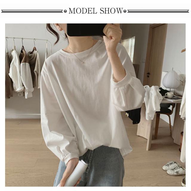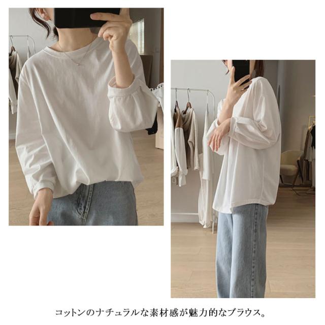 ボリューム袖 ブラウス チュニック 綿 コットン レディース トップス シャツ 7分袖 長袖 パフスリーブ パフ チュニック バルーン袖 大きいサイズ 体型カバー 白 黒 グリーン 大人可愛い カジュアル 無地 送料無料