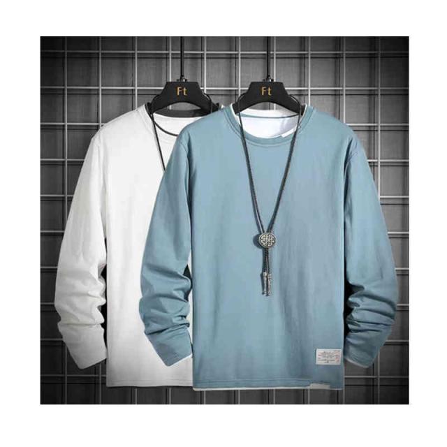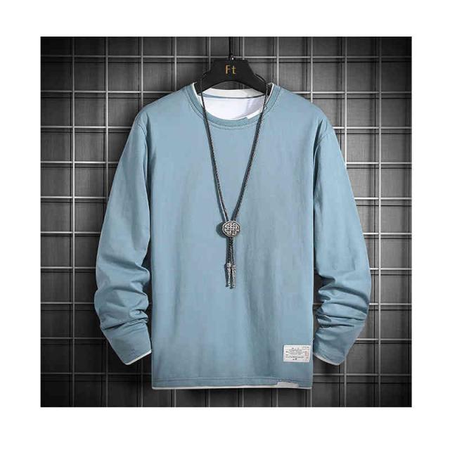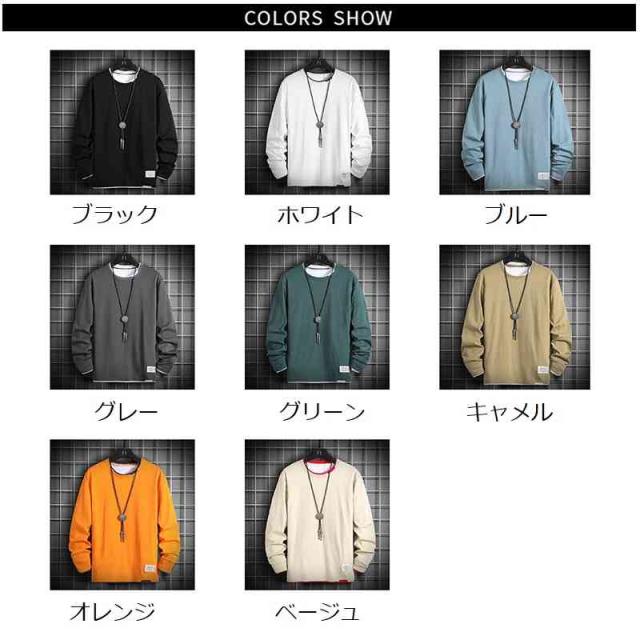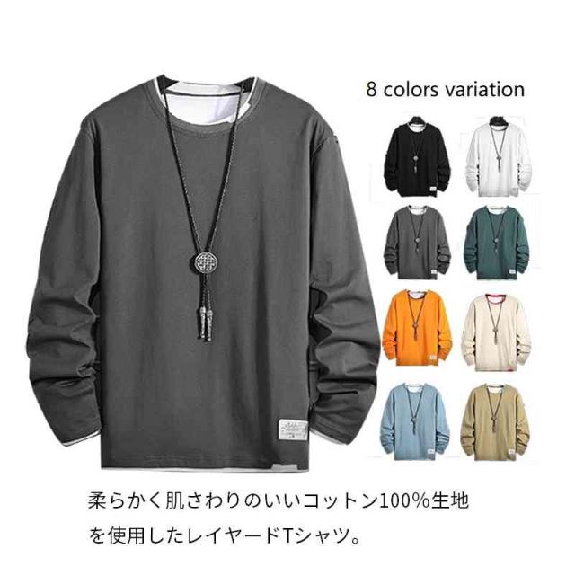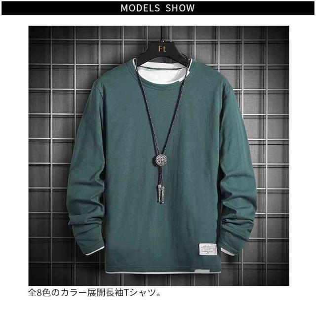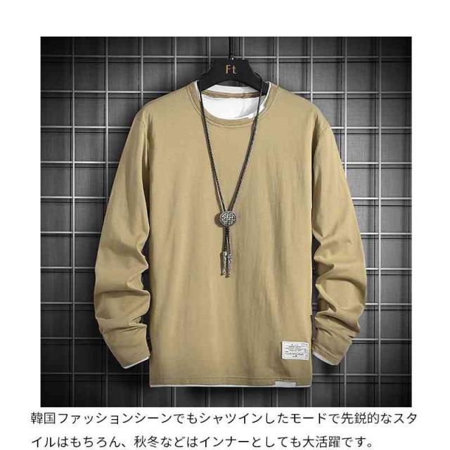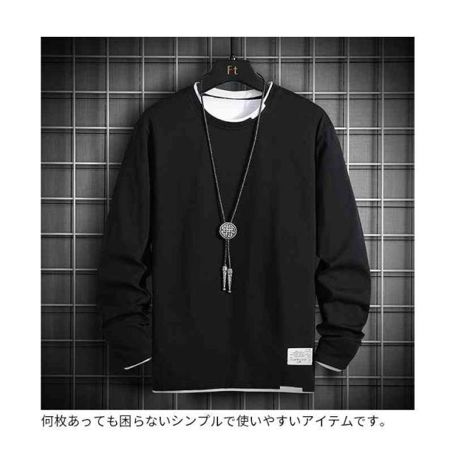 Tシャツ 長袖Tシャツ 重ね着風 春服 トップス カットソー イージーTシャツ Uネック 丸首 カジュアル おしゃれ 韓国服
