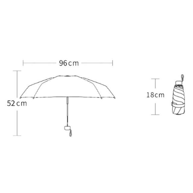 | サイズについての説明 | 収納時 : 18cm 使用時 : (約)直径96cm 高さ52cm 骨の数:6本 重さ:(約)258g ※サイズ表の実寸法は商品によって1-5cm程度の誤差がある場合がございます。 |