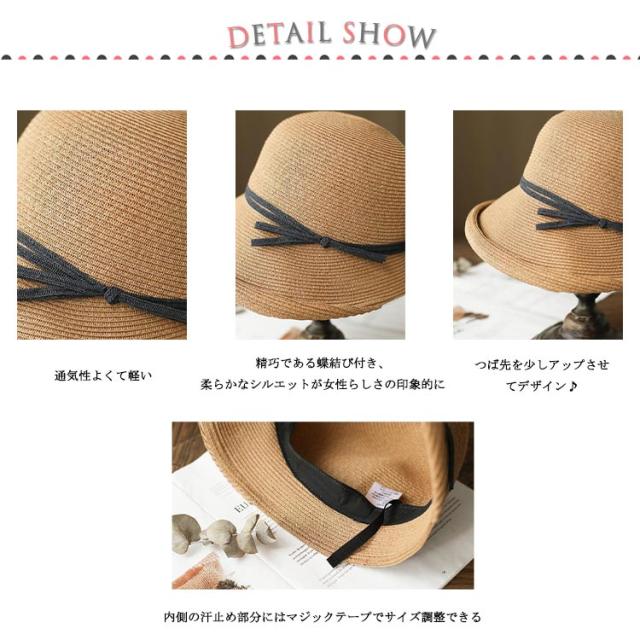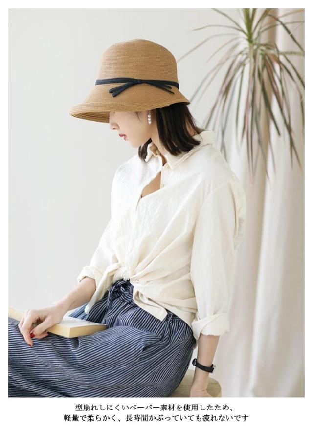 | くるんと外側に丸まった大きなつばが特徴の帽子。 日差しが強い春と夏のマストアイテム! 前つばが長く、横からの紫外線から大事な肌をしっかりカバー! 精巧である蝶結び付き、柔らかなシルエットが女性らしさの印象的に、エレガントな雰囲気が溢れる! 型崩れしにくいペーパー素材を使用したため、軽量で柔らかく、長時間かぶっていても疲れないです。 お散歩・ショッピング・ちょっとした旅行にもとっても便利です。 | |