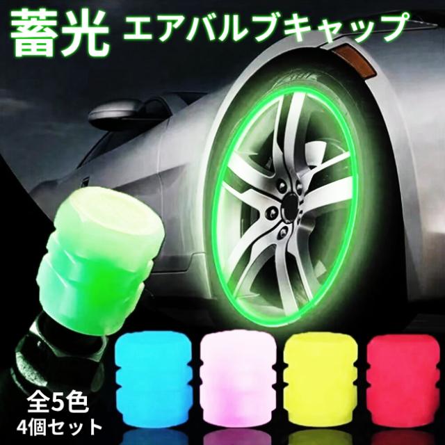 光る タイヤ エアバルブ キャップ 蓄光 蛍光 夜光 suv トラック 自転車 軽量 高強度 腐食防止 エアーバルブ シリコン カバー 外装パーツ 4個セット カー用品 カスタム ドレスアップ
