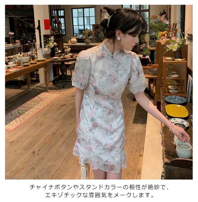 送料無料 チャイナドレス 花柄 チャイナドレスミニ かわいい オシャレ 服 忘年会 仮装 コスチューム コスプレ チャイナ服 ワンピース 結婚式 ショート パーティ イベント 撮 ピンク ブルー