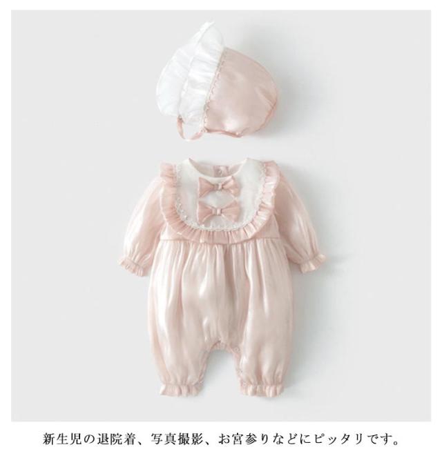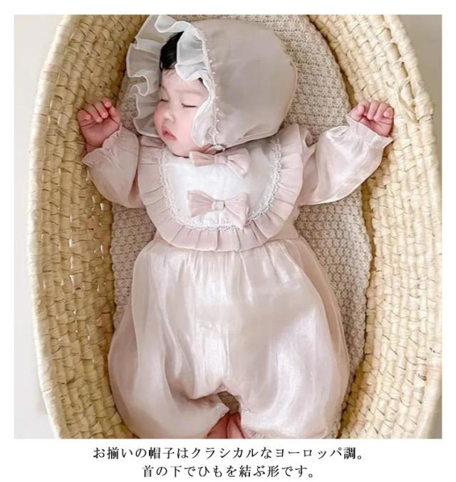 ロンパース 新生児 帽子付き!セレモニードレス ベビー服 お宮参り ベビー用品 退院 女の子 ワンピース ロンパース 赤ちゃんドレス 出産祝い ベビー ドレス フォーマル ワンピース