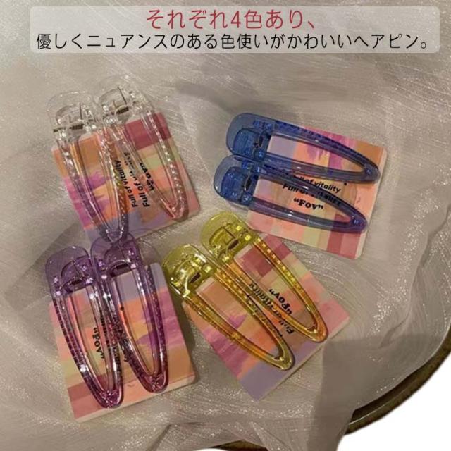 少女 ヘアピン 4色 ヘアアクセサリー パッチン留め 8個 おしゃれ パッチンピン セット かわいい 透明感 前髪 大きめ カラーピン カジュアル 簡単 大人 レディース 女の子 女性 子供 ヘアクリップ