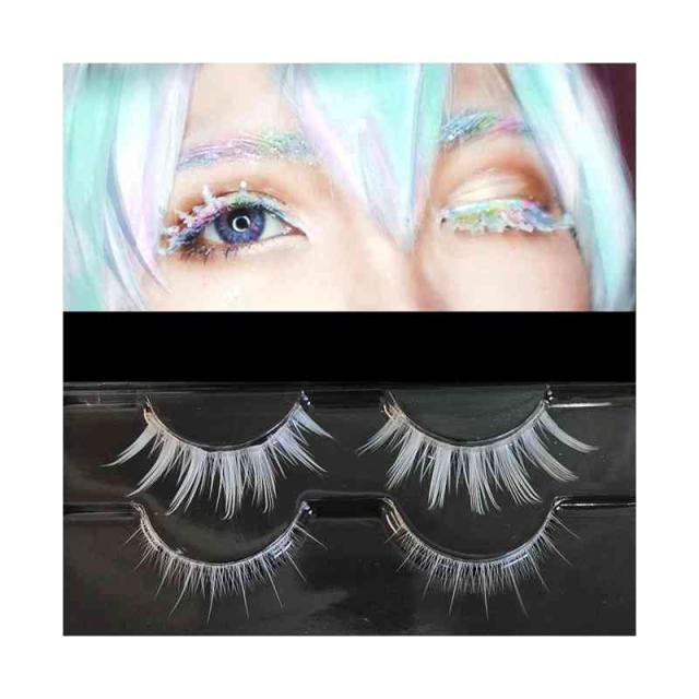 つけまつげ 上 下 白 ホワイト 羽まつげ 送料無料 白 アニメ コスプレ キャラクター コスチューム 2次元 ハロウィン コスプレ 羽根 アイラッシュ クリスマス パーティー イベント ダンス 仮装 変装