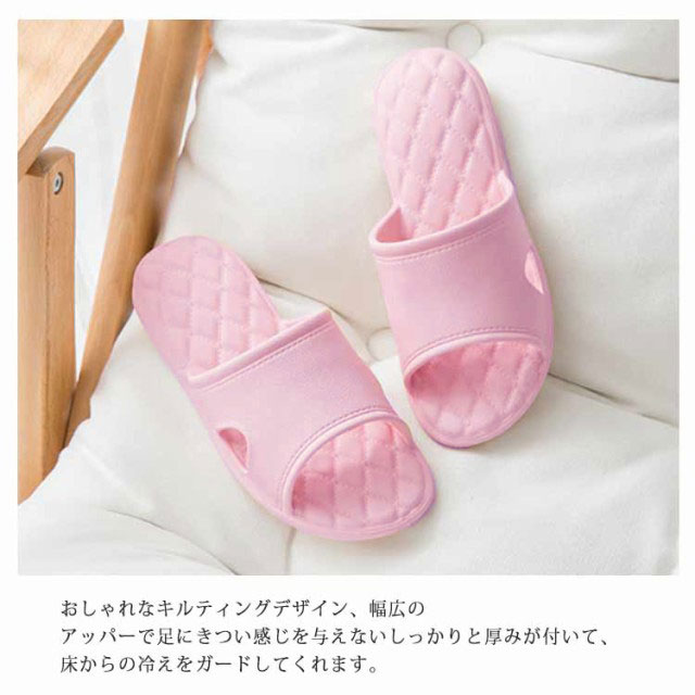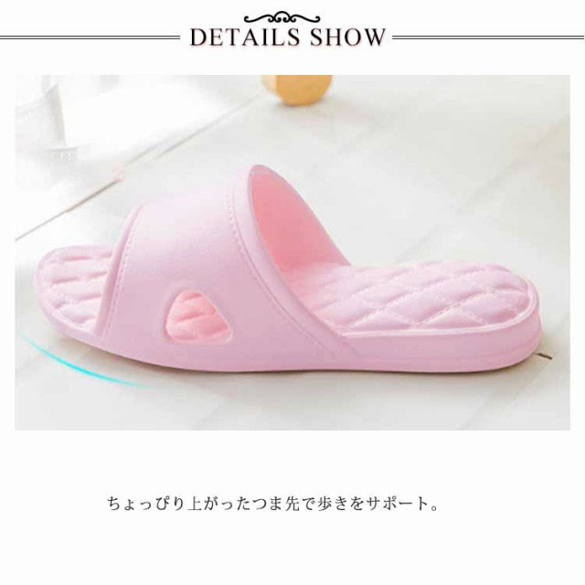 | Ag+抗菌加工された、EVA素材のキルティングバススリッパ。 快適に履ける速乾スリッパ、湿っぽい場所に最適 おしゃれなキルティングデザイン、幅広のアッパーで足にきつい感じを与えないしっかりと厚みが付いて、床からの冷えをガードしてくれます。 ちょっぴり上がったつま先で歩きをサポート。 クッション性のある素材なので、自然と足にフィットしますので、履き心地もとても快適で、長時間使用しても疲れにくいです。 | |