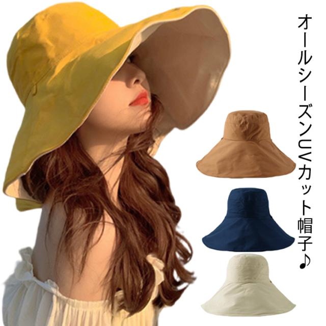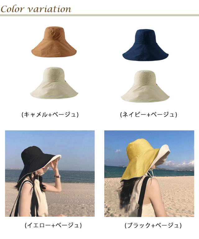 送料無料 帽子 レディース つば広帽子 折りたたみ 春 夏 uvカット UVケア 両面使える 折り畳み レディース ハット おしゃれ 無地 あご紐付き つば広 帽子 日よけ コットン 紫外線対策 日焼け止め UPF50 旅行 アウトドア