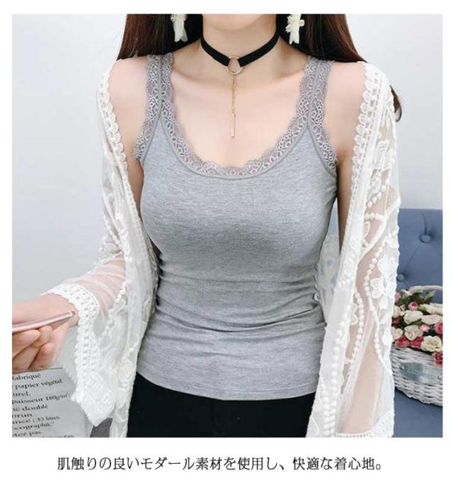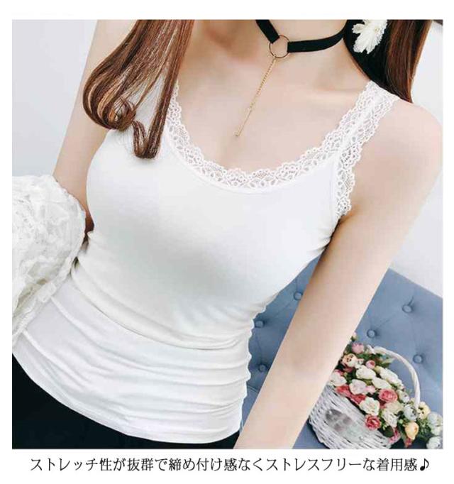 タンクトップ レディース ノースリーブ キャミソール レース インナー 肌着 下着 キレイめ Uネック トップス ストレッチ カットソー シンプル 重ね着 インナー 女の子 おしゃれ 大きいサイズ 吸湿快適 モダール 送料無料