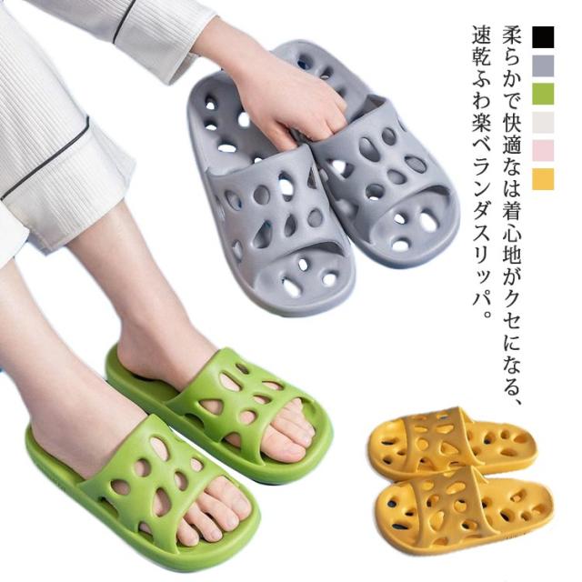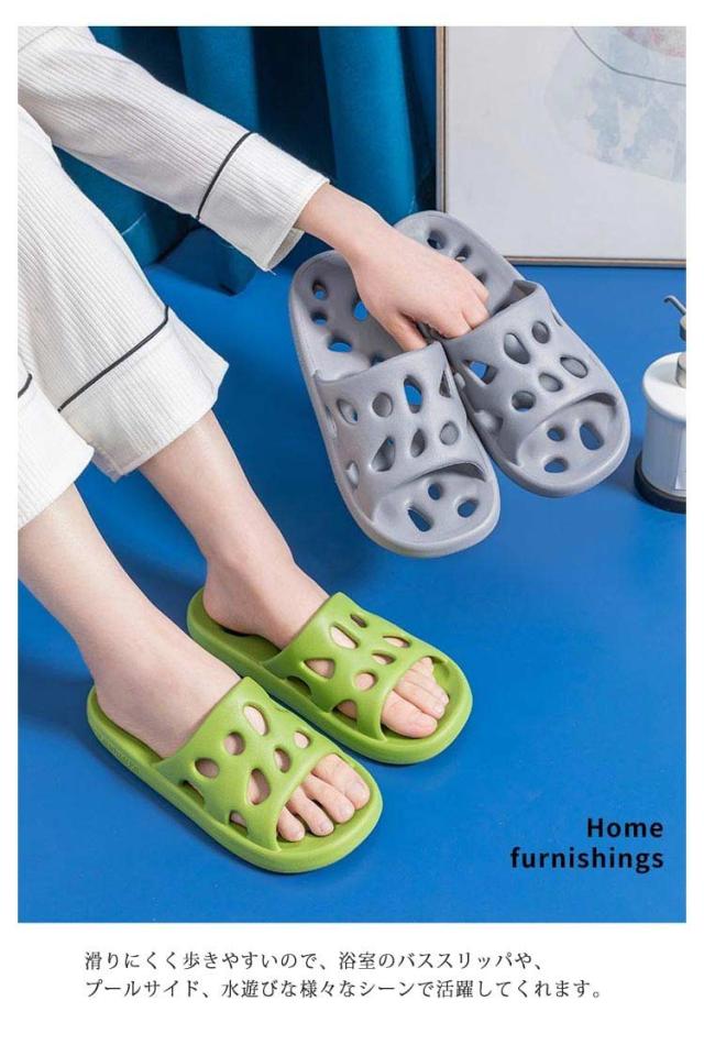 穴あきソール バススリッパ お風呂 夏 前開き スリッパ ベランダサンダル シャワーサンダル 軽量 室内履き レディース メンズ サンダル 水洗い 速乾 穴あき 滑り止め 掃除 抗菌 静音 送料無料