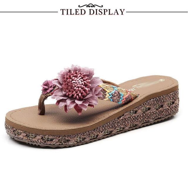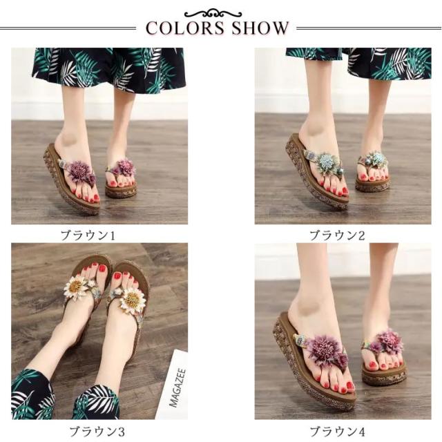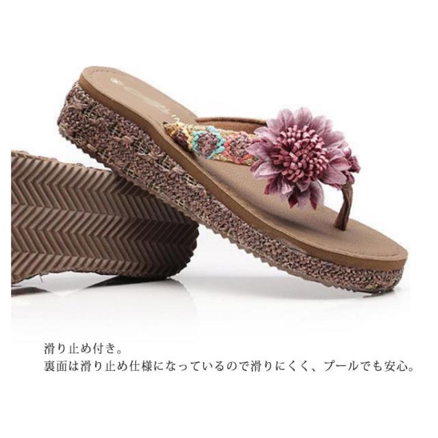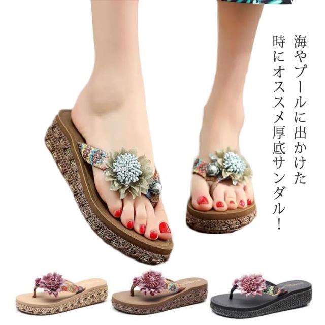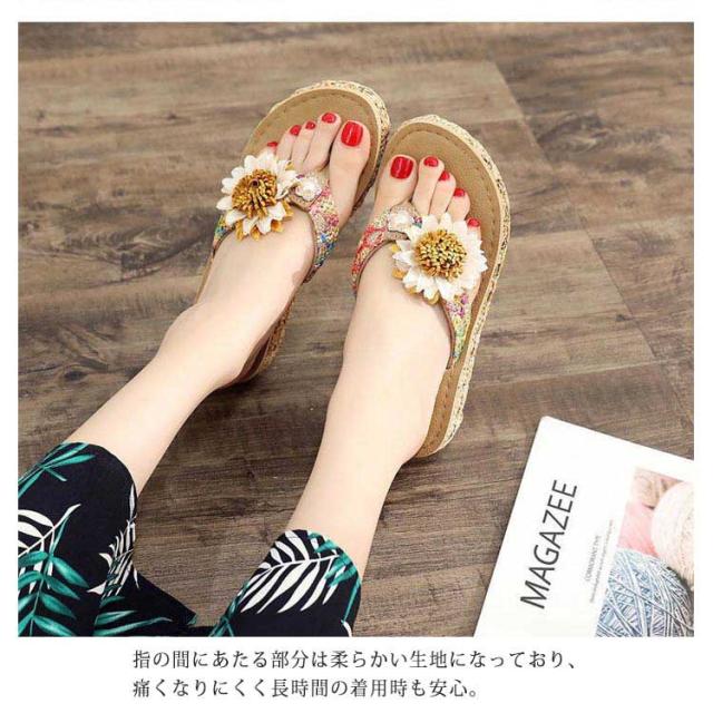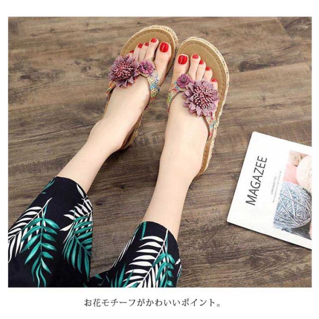 お花モチーフ トングサンダル 防水 ビーチサンダル 厚底 レディースシューズ 軽量 痛くない 女の子 レジャー用 歩きやすい おしゃれ かわいい 滑り止め 美脚 ビーチ 海 写真撮影 リゾート 旅行 華やか