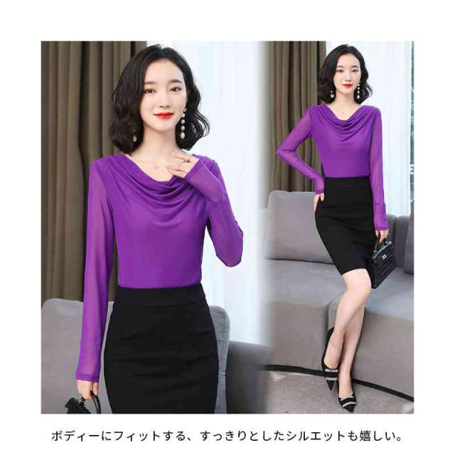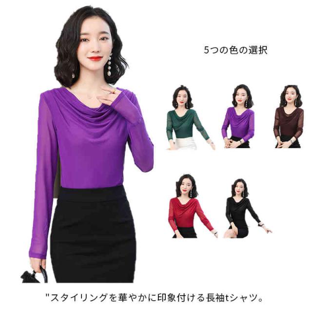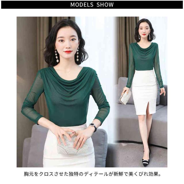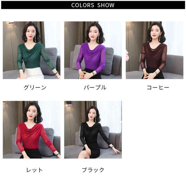 カシュクール カットソー tシャツ レディース インナー Vネック ブラウス 大人 上品 セクシー 肌見せ トップス 春 夏 秋 冬 透け カジュアル ミセス 30代 40代 50代