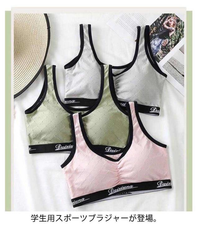 | 学生用スポーツブラジャーが登場。 綿で柔らかい肌ざわりが心地よく、お子様も納得の着心地。 動きにしっかりフィットする女の子用万能インナー。 アウター感覚で着れて、見えてもOK! ダンスにも使える、取り外し可能カップ付きスポーツブラ。 | |